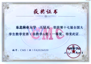 近年来,我校立足林业院校办学特色,围绕数学基础课程建设,构建了“以赛促学、教赛相长”的教学体系。学校坚持以学科竞赛反哺课堂教学,在AI赋能教学创新、推动人才培养方案修订的背景下,持续深化公共数学课程改革,夯实学生数学基础,为高水平创新型与技术技能人才培养提供有力支撑。此次比赛前,学校专门组建竞赛指导教师团队,通过统筹协调组织、开展专项培训、开设公共选修课程等多维方式,为学生提供精准的专业指导,强化数学逻辑思维训练,进而全面提升学生的综合素质与核心竞争力。