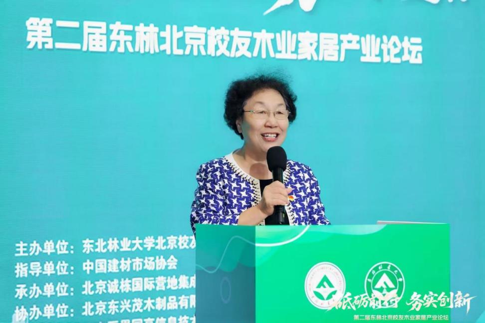 东北林业大学原党委副书记陈文斌回顾了东林人在木业家居领域取得的历史成就,她指出,东林人始终秉承“学参天地、德合自然”的校训,在木业家居领域做出过突出贡献。面对当下的新形势、新挑战,我们需要更加注重科技创新和产业升级,推动行业高质量发展。