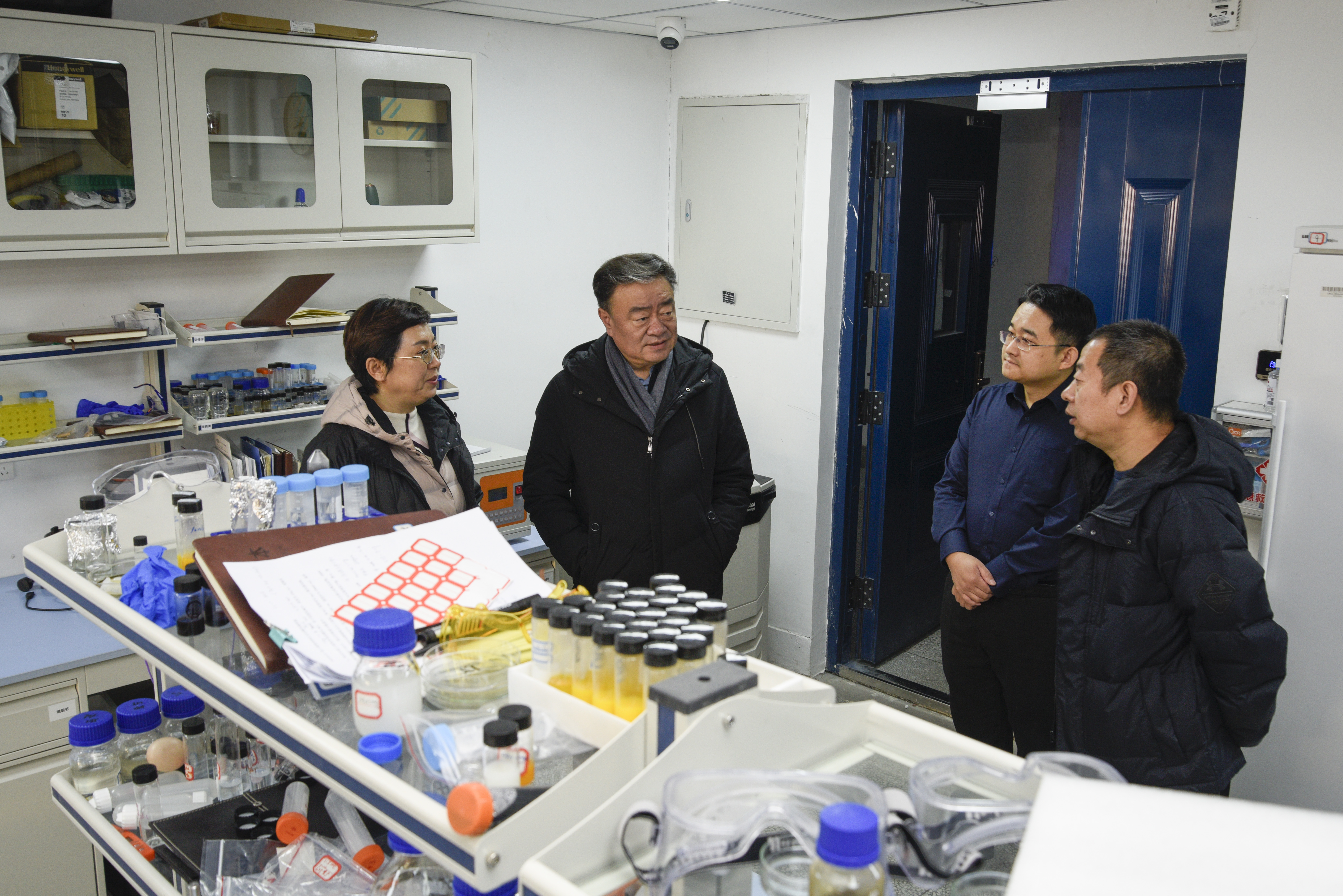 孙猛一行查看了实验室、食堂、室外管线等关键部位,详细询问校园安全保卫、假期值班值守、危化品管理、寒假留校学生管理等情况。