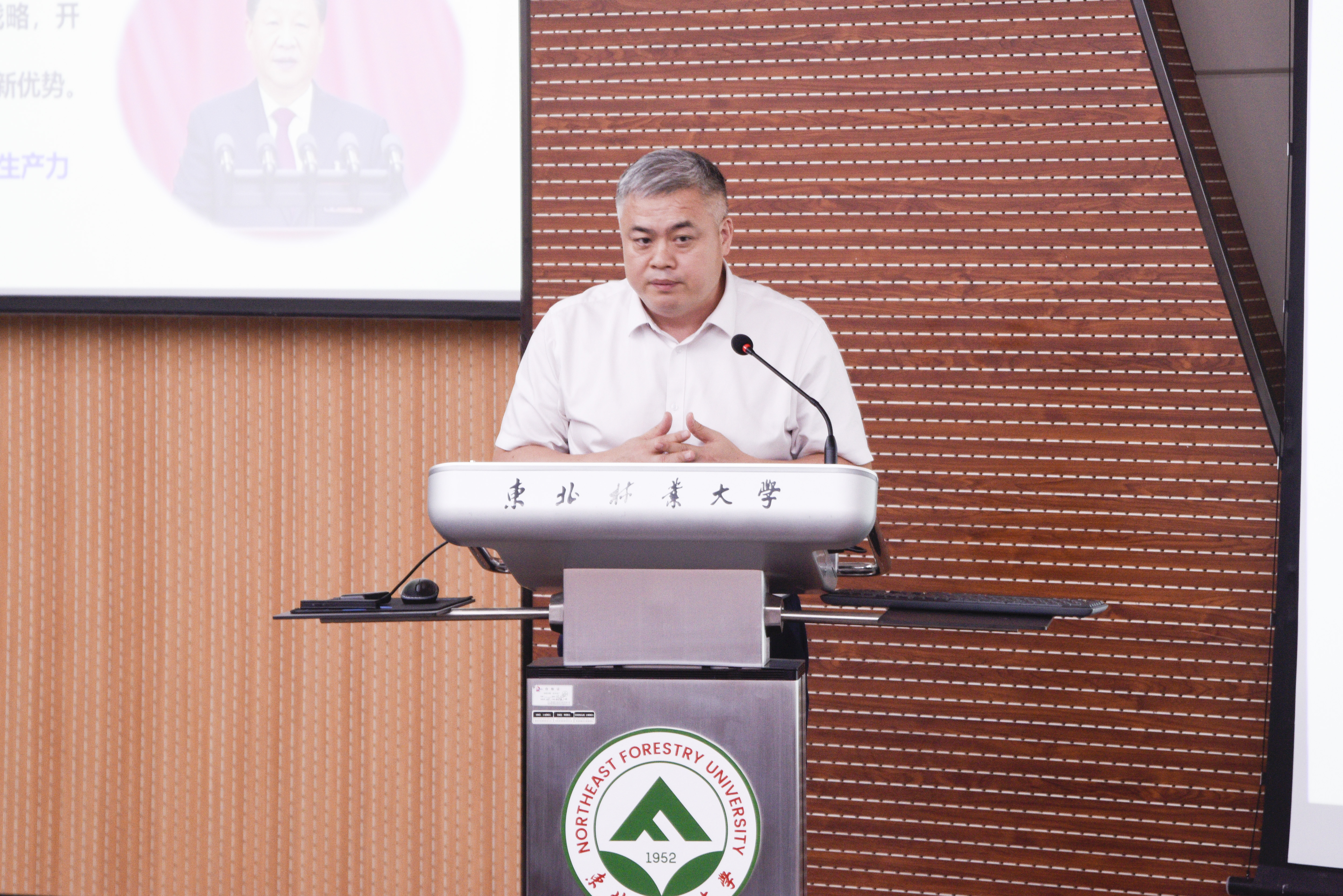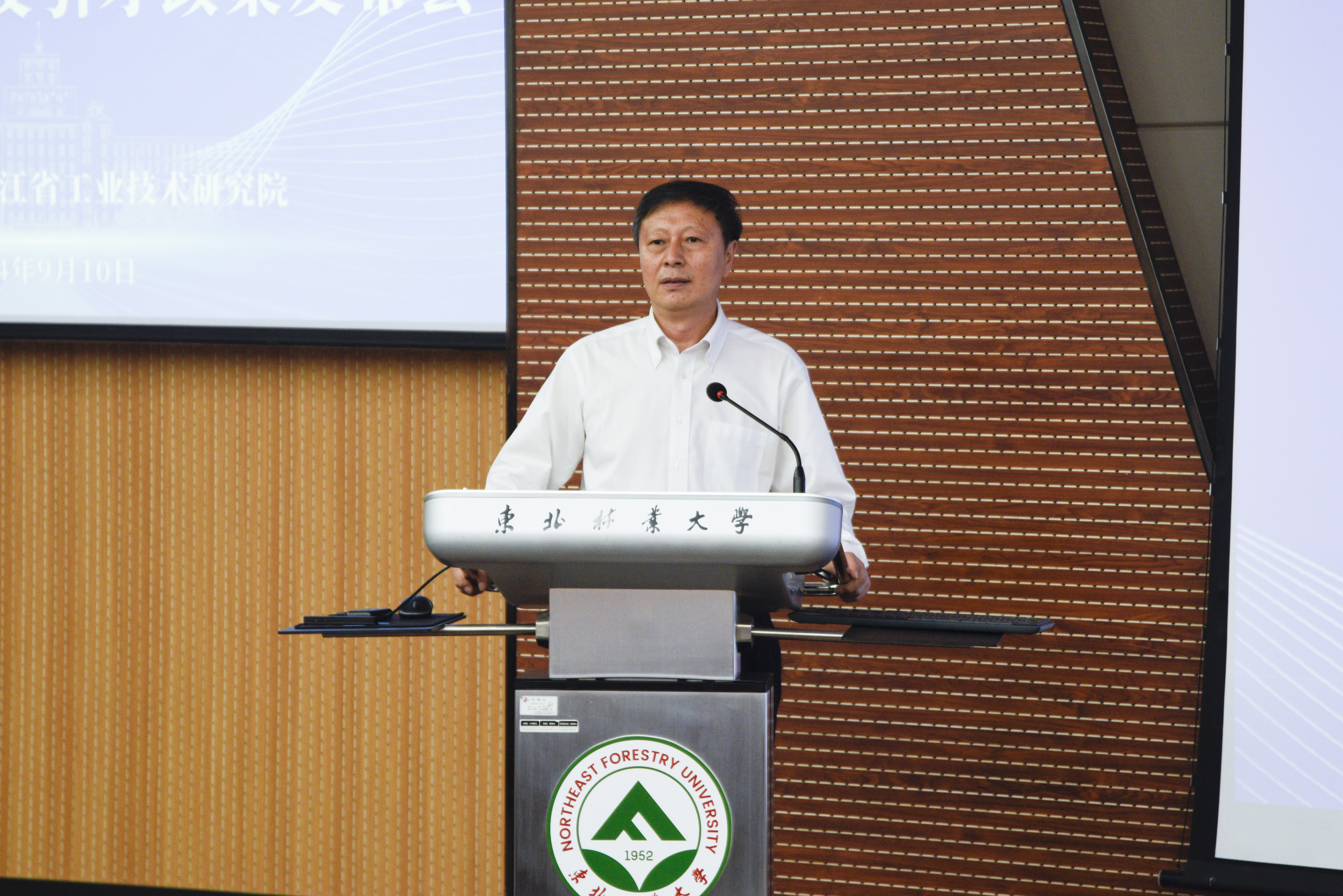 校长宋文龙在发布会上讲话。他表示,学校梳理了长期以来在相关领域科技创新取得的成果,举办此次发布会,目的就是希望科技成果能够走出校园,在龙江落地生根,服务地方经济社会发展,支撑国家战略。他表示,东林因林而生、因林而兴,扎根祖国北疆,守护绿水青山、致力生态文明,东林人始终以生态报国作为责任担当,以服务龙江经济社会发展作为重要使命,建校72年来,培养了20余万名毕业生,为国家的林业事业作出了突出贡献。他强调,东林始终强调广大教师的科技成果要做到“顶天立地”,既服务国家战略需求和关键科技领域,也要深入基层一线,把论文写在林区、写在祖国的大地上,用科技力量为绿色龙江建设作贡献。