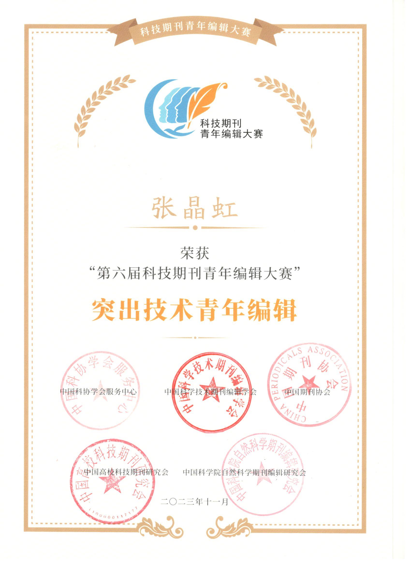 本届大赛共有1957名编辑报名参赛,经过激烈角逐,有54人进入现场决赛。在技术编辑赛道决赛中,选手通过项目展示和现场答题,根据评委打分和答题得分情况,评选出“杰出技术青年编辑”,“突出技术青年编辑”以及“优秀技术青年编辑”。张晶虹凭借过硬的专业能力被评为“突出技术青年编辑”,此项荣誉仅有4人获得。