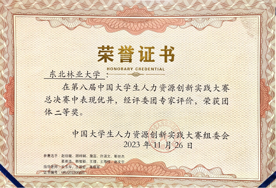 11月24日至26日,在河北雄安新区举办的第八届中国大学生人力资源创新实践大赛总决赛中,由文法学院政治学与行政学专业十名学子组成的东北林业大学代表队,获得该项赛事的团体二等奖。