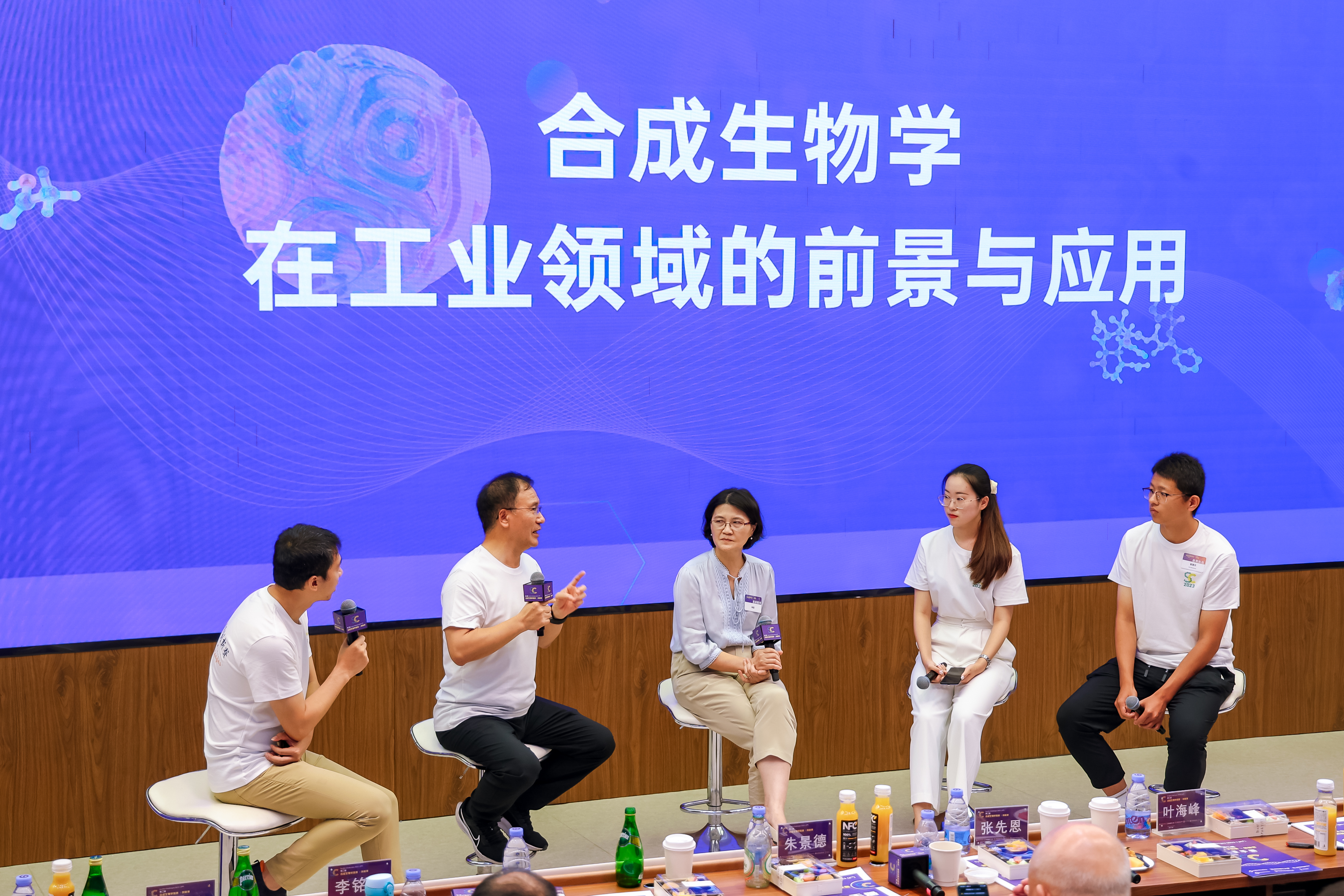 在圆桌论坛环节,学院李佳宁同学作为参赛队员代表与中国科学院院士、上海交通大学生命科学技术学院名誉院长、微生物代谢国家重点实验室主任邓子新院士,林影教授面对面畅谈合成生物学在工业领域的前景和应用。