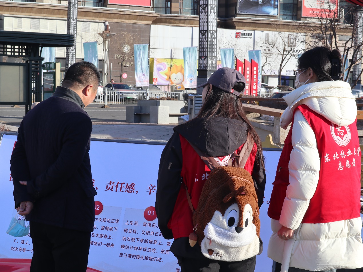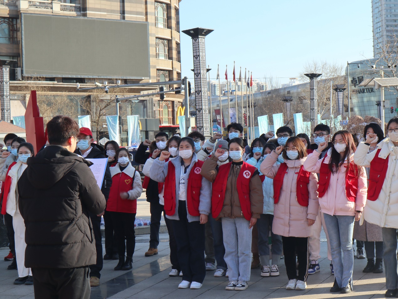 “我愿意成为一名光荣的志愿者。我承诺:尽已所能、不计报酬、帮助他人、服务社会……”3月3日下午,经济管理学院志愿者刘振宇正在带领学院志愿者们,在哈尔滨市志愿者广场重温“青年志愿者誓词”,青春昂扬的誓言响彻志愿广场。
