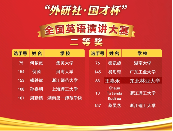 12月11日,2022“外研社·国才杯”全国大学生英语演讲、写作、阅读大赛全国决赛于外研社高等英语资讯微信公众号直播端圆满落幕。来自全国419位风华少年分别于三大舞台激烈角逐、尽显英姿。其中,我校外国语学院英语专业2019级1班刘书琪同学在英语阅读大赛中获得一等奖,经济管理学院2020级会计ACCA班王嘉禾同学在演讲大赛中获得二等奖,两项比赛均获历史最好成绩!