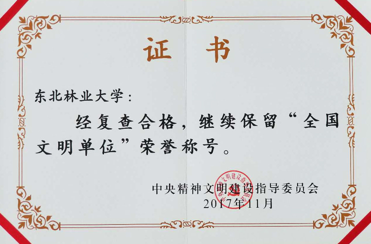 学校不断强化“以林育人”办学特色。把生态文明理念写进本科人才培养目标,建立生态文明教育课程体系,挖掘森林博物馆、帽儿山实验林场和凉水实验林场的育人功能,培育“绿色人才”,迟德富、穆立蔷、马玲、崔晓阳四位教授荣获“全国林业和草原教学名师”称号,陈祥伟教授荣获“全国绿化奖章”,林学院获得“中国生态文明先进集体”称号。