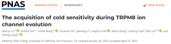 5月21日,美国科学院院刊《Proceedings of the National Academy of Sciences of the United States of America》发表了我校野生动物与自然保护地学院杨仕隆教授研究团队的题为“The Acquisition of Cold Sensitivity during TRPM8 Ion Channel Evolution”的研究论文(图1),该研究揭示了动物登陆演化与TRPM8冷激活机理。