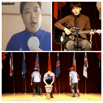 五洲风采展示的同时,热情满满的同学们也为大家准备了精彩的文艺表演。坐标韩国的姜荣柱将饭勺当做麦克风,在家里为大家深情演唱Post Malone久居B榜的歌曲《Circles》;刚果(金)的迪迪叶、巴瓦巴和欧宝力三名同学则在活动现场为大家跳起了传统舞蹈,并和线上的同学们有爱互动:“感谢大家观看我们的刚果(金)舞蹈,希望你们会喜欢,今年的国际文化节很新鲜也很有趣,在线上见到了很多许久未见的老朋友们,大家都特别开心。”