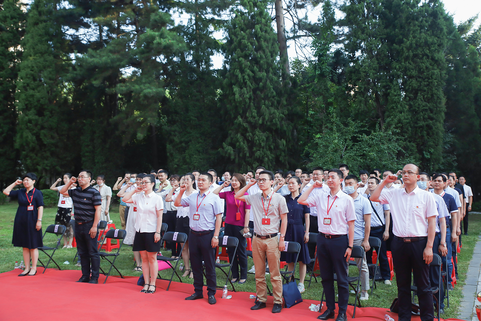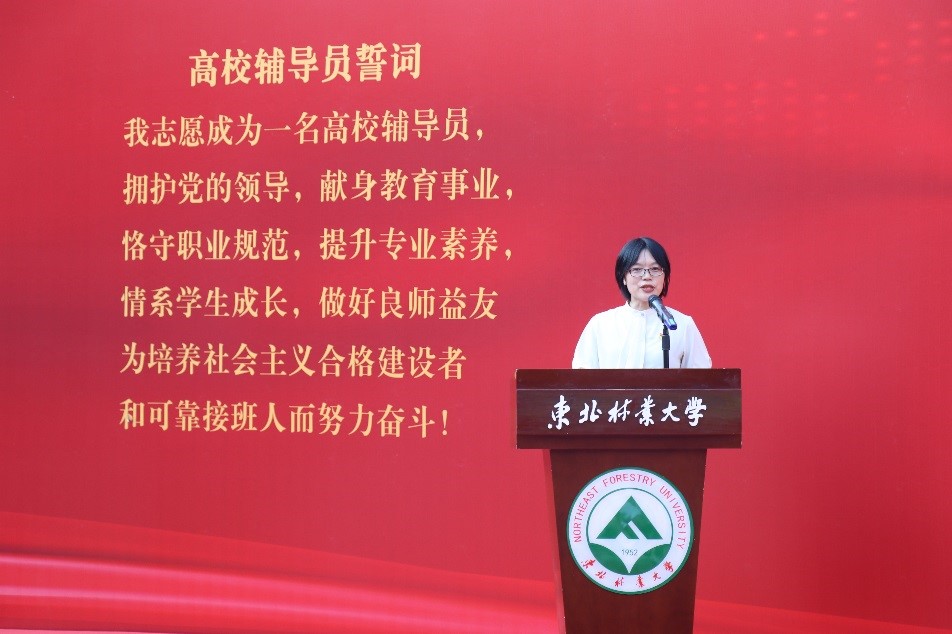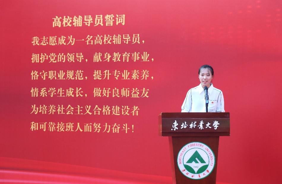林学院辅导员夏龙柱带领全体辅导员再次重温 “高校辅导员誓词”。所有辅导员起立,高举右拳,庄严宣誓。铿锵而响亮的誓言声响彻在蓝天碧草之间,回荡在巍峨主楼之上。