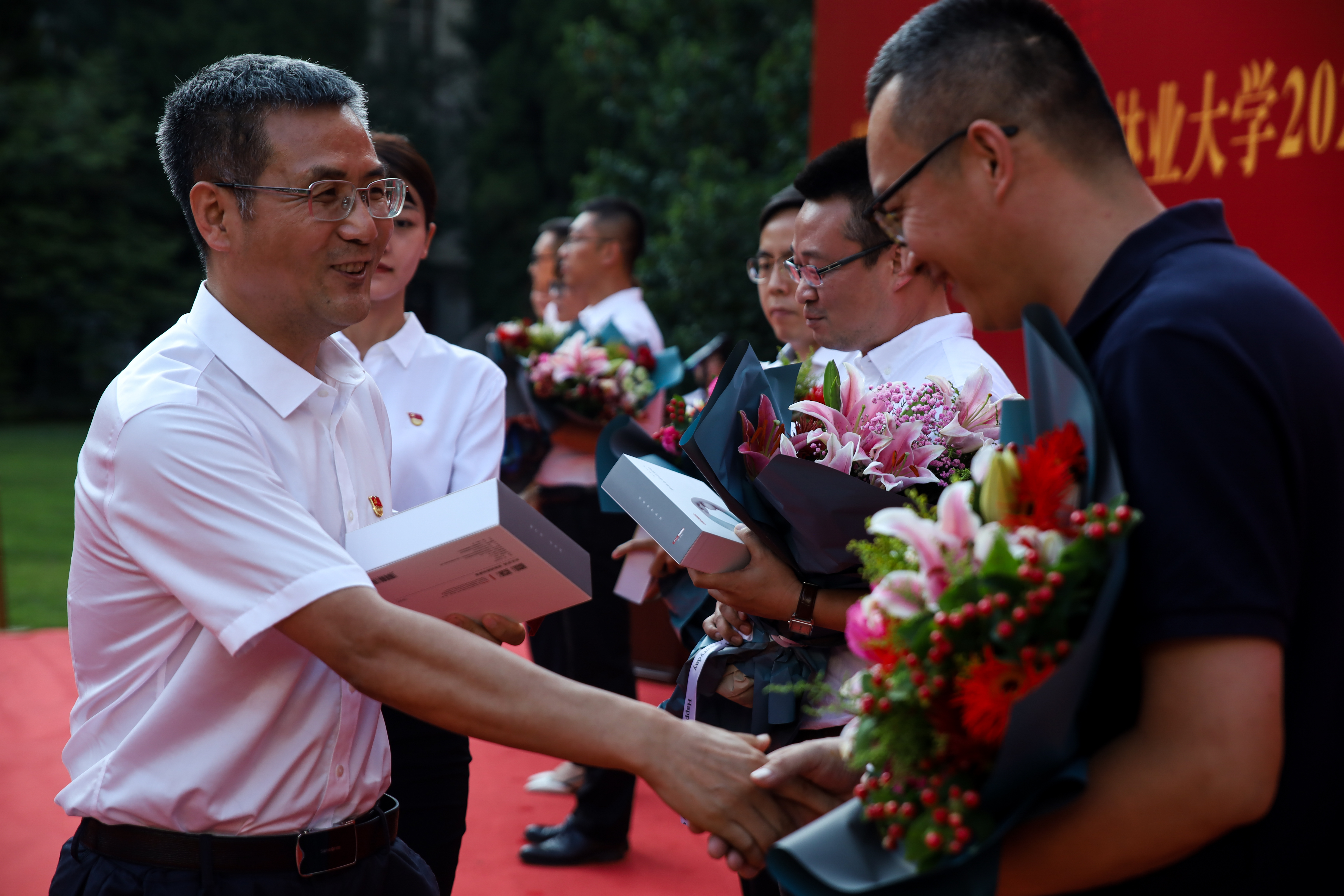 雒文虎副校长为即将转(离)岗辅导员颁发纪念品