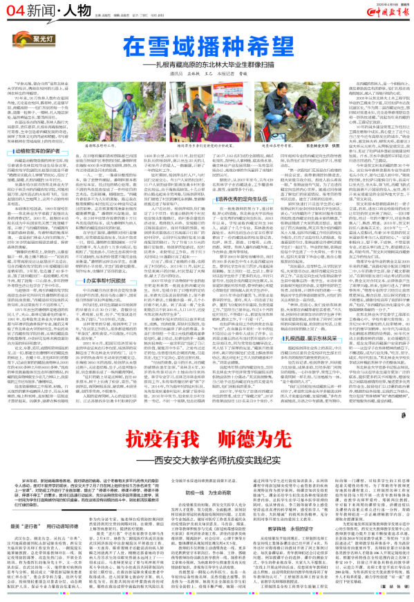 4月9日,《中国教育报》人物专版以《在雪域播种希望》为题,用大半版的篇幅报道了我校毕业生扎根青藏高原的感人故事。
