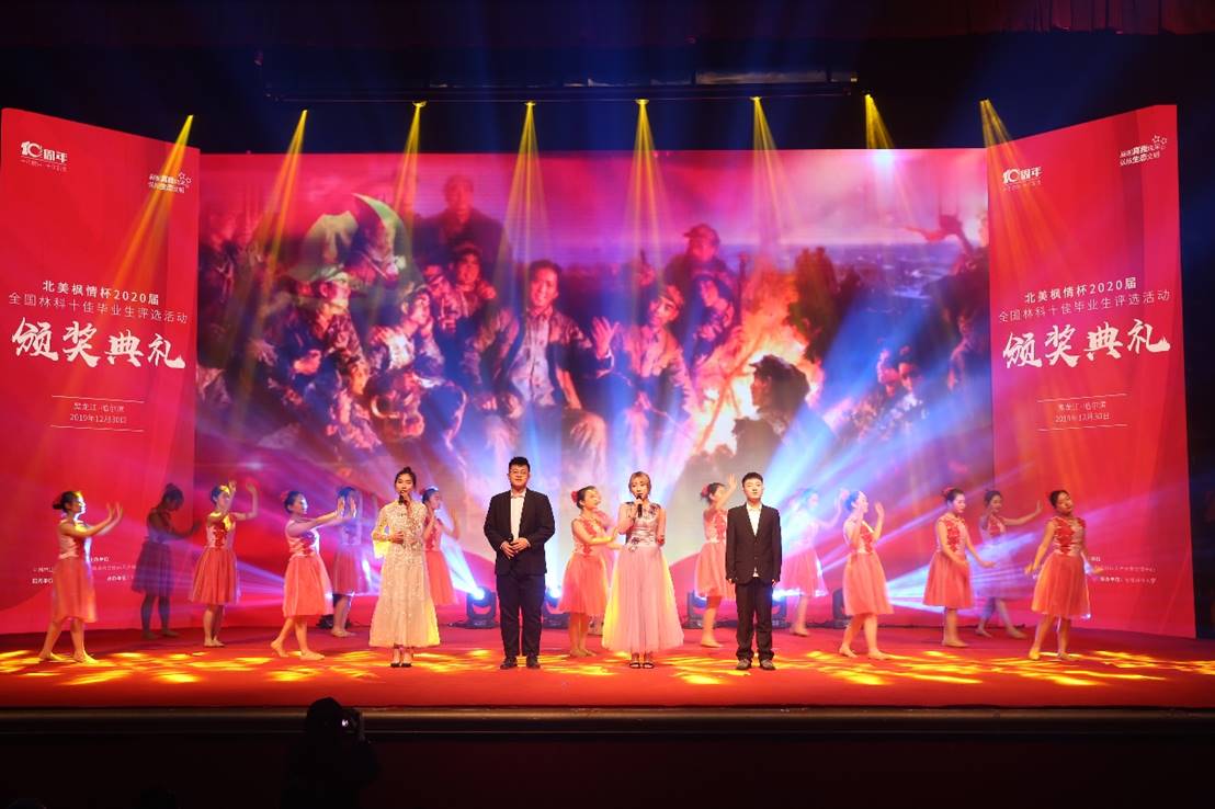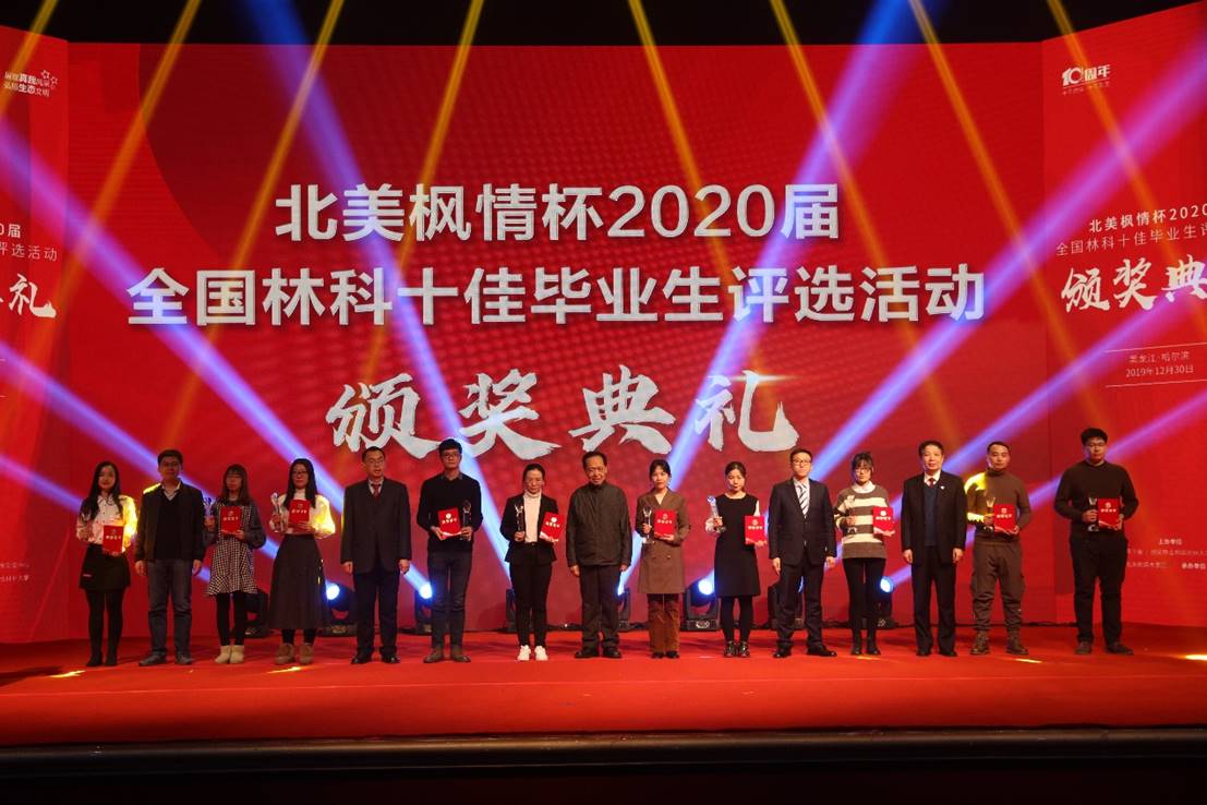 由中国林业教育学会、国家林业和草原局人才开发交流中心共同主办,我校承办的“北美枫情杯”2020届全国林科十佳毕业生评选颁奖典礼,于12月30日在我校科学会堂成功举行。