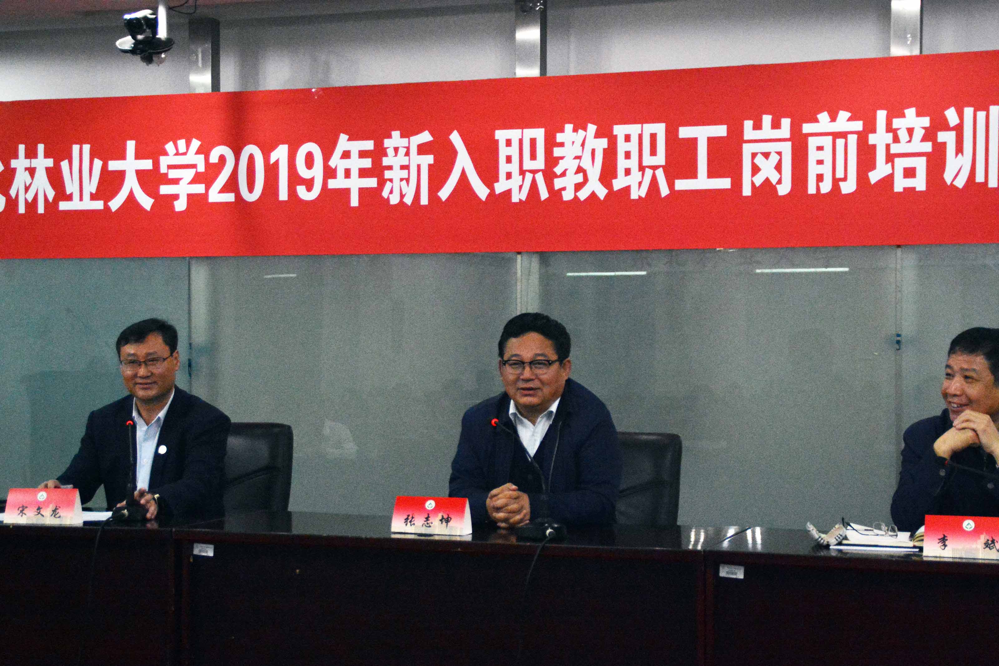 校长助理宋文龙对岗前培训提出两点要求:一是要严格遵守培训规定。二是培训结束后,学校将组织新教师进行课堂教学展示并进行达标评估,合格者颁发“东北林业大学岗前培训合格证书”。