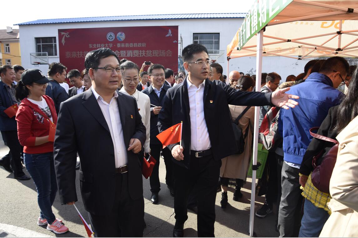 泰来县是齐齐哈尔市下辖县,由于资源约束、生态脆弱、缺乏立县富民的主导产业,被国家列为重点扶持贫困县之一。2015年东北林业大学开始定点扶贫泰来县,学校充分发挥学科优势,始终关注、支持泰来脱贫攻坚工作,先后投入745万元,帮助发展苗木繁育、木耳种植、棚室蔬菜等产业项目;积极开展消费扶贫,采购、帮售了2000多万元的泰来农副产品;坚持扶贫扶智,选派了26名研究生到乡村支教,培训了1120名基层干部、教师和技术人员;努力防范因病致贫,向县人民医院直接捐赠医疗设备109万,引入5G人工智能医疗平台,提升了泰来医疗技术专业水平;依托科技特色优势,为泰湖湿地生态补水、泰来县“山水林田湖草”多系统生态综合治理和农村生活垃圾治理等事关民生福祉的项目,争取资金近两千万元,进一步改善了泰来的生态环境和人居环境。2019年5月5日,通过第三方评估,省政府正式批准泰来县退出贫困县序列,脱贫摘帽。