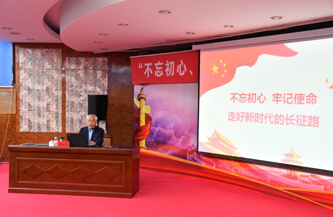 周英东从“不忘初心、牢记使命”的历史逻辑、本质要求、时代担当三个方面,全面剖析了为什么中国共产党人的初心和使命是为中国人民谋幸福、为中华民族谋复兴。