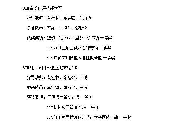 2017年10月28日-29日,全国高等院校BIM应用技能比赛(本科组)总决赛在长沙理工大学举行,来自全国180余所本科院校1029名选手参加了比赛,由土木工程学院工程管理专业2015级本科生组成的参赛队在比赛中表现出色,获得专项比赛一等奖4项,团队全能一等奖2项。