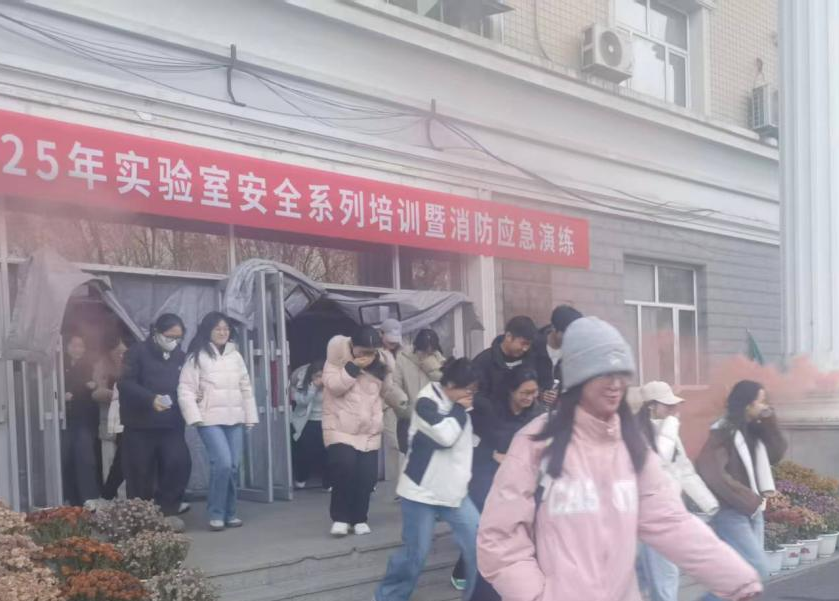 在火灾突发事故应急处置专题培训中,学校保卫处消防安全监督管理科科长王宇新系统讲解了高校实验室常见的火灾隐患、预防措施、初起火灾的扑救原则以及火场逃生的关键技巧。在模拟火情的应急疏散演练中,设定某实验室发生火情,楼内模拟释放无害烟雾,部分通道设置了简易障碍以增强临场感。消防警报响起后,在应急引导员的指挥下,师生用湿毛巾等物品捂住口鼻,迅速沿指定疏散路线低姿、快速、有序撤离。整个疏散过程组织严密,各岗位人员配合默契,全体人员在预定时间内安全转移至指定集结区域。