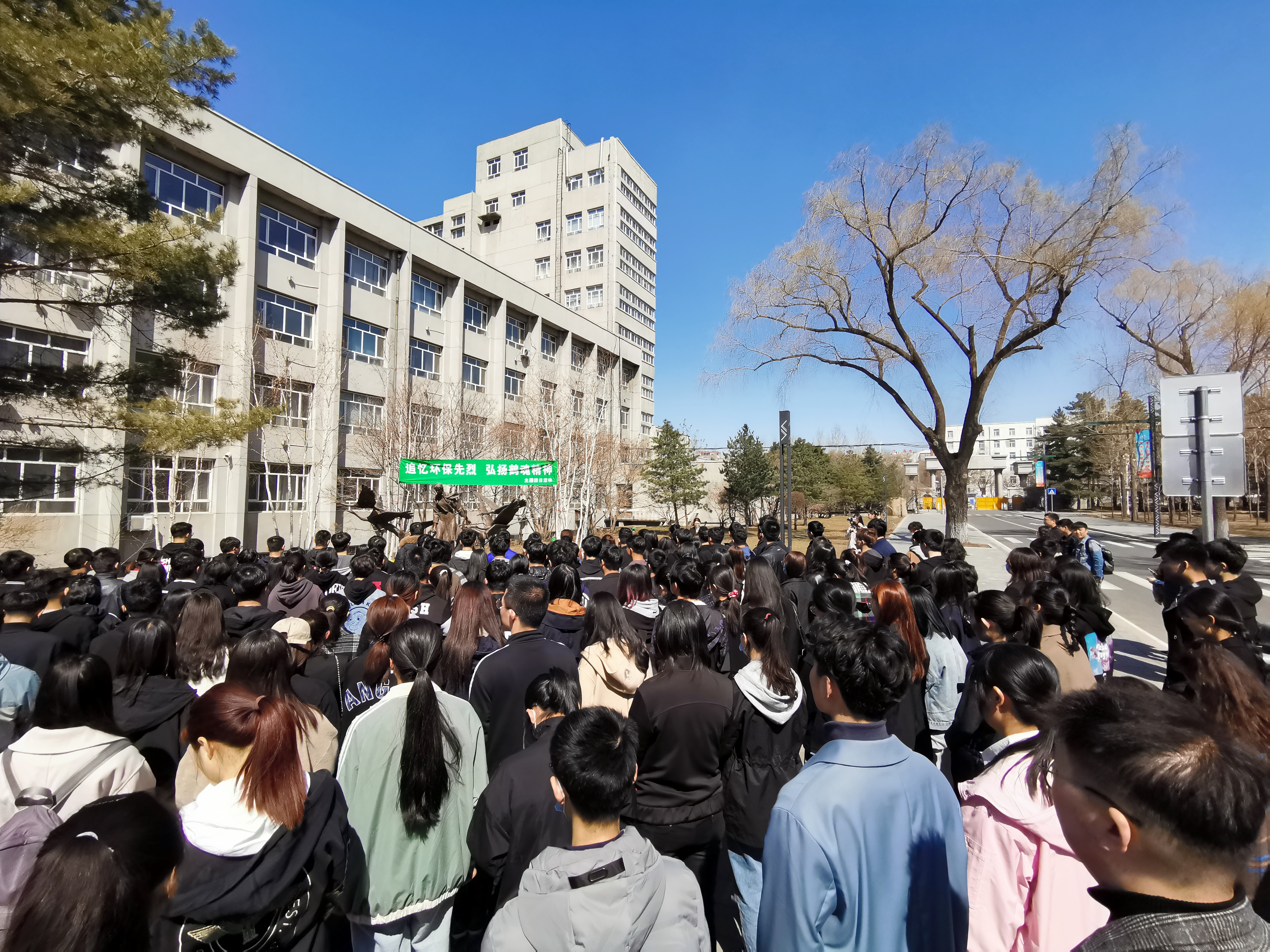 “走过那片芦苇坡,你可曾听说,有一位女孩,她留下一首歌……”4月4日清明节当天,“追忆环保先烈 弘扬鹤魂精神”主题团日活动在徐秀娟烈士塑像前的草地上举行,200余名同学自发来到活动现场,一起缅怀徐秀娟烈士。