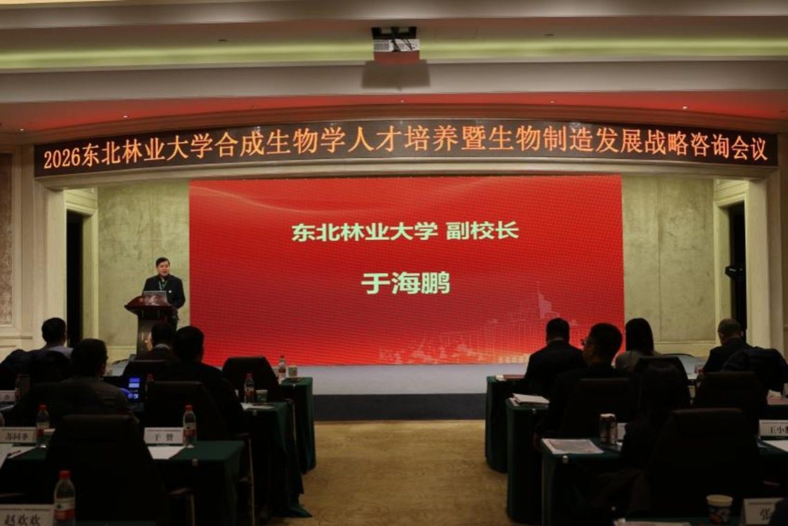 1月9日至1月11日,由我校举办的“2026东北林业大学合成生物学人才培养暨生物制造发展战略咨询会议”在全总(哈尔滨)劳模技能交流基地花园酒店召开。党委常委、副校长于海鹏出席开幕式并讲话。