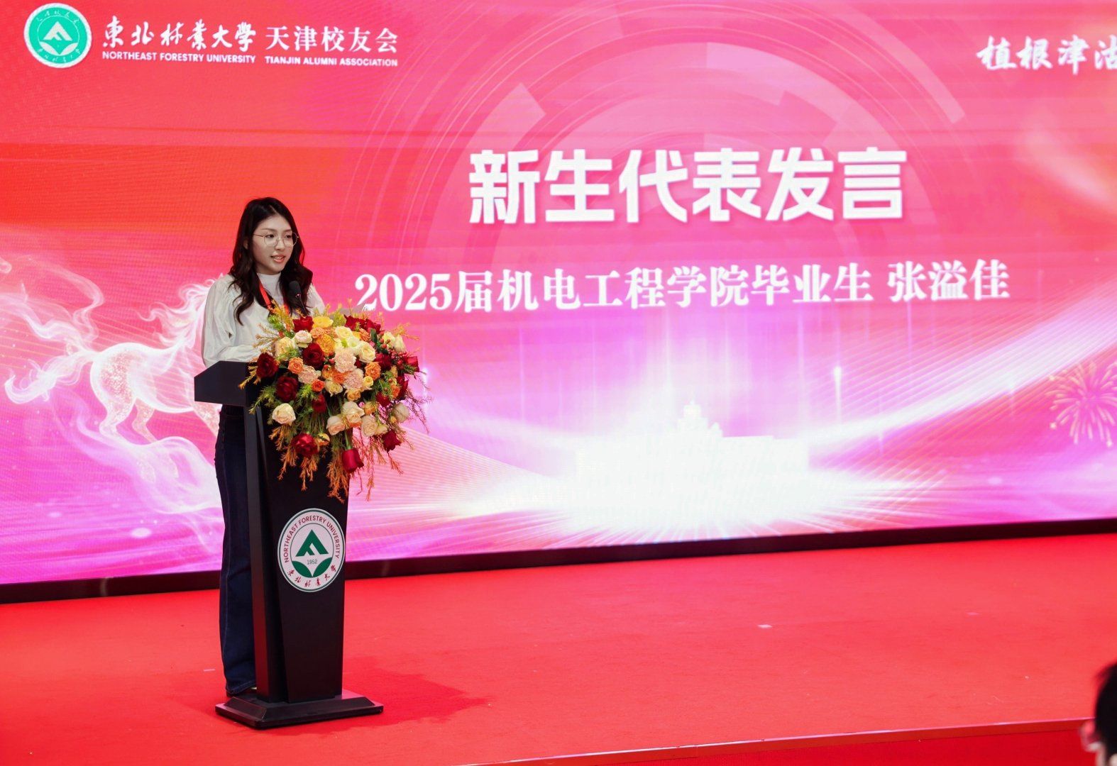 上海校友会会长卓丽环、天津市高校校友会科技经济融合研究会企业服务部部长郑骥驰分别致辞,表达了对天津校友会发展的祝福与支持。新校友代表、2025届毕业生张溢佳表示,将发扬东林精神,奋发向上、扎根天津。