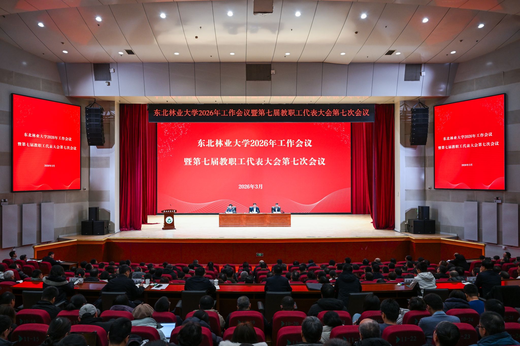 3月4日下午,学校2026年工作会议暨第七届教职工代表大会第七次会议在科学会堂举行。会议全面总结学校2025年工作,分析当前形势,部署2026年重点工作任务,进一步统一思想、凝聚共识,为新一年学校发展谋篇布局、凝心聚力。