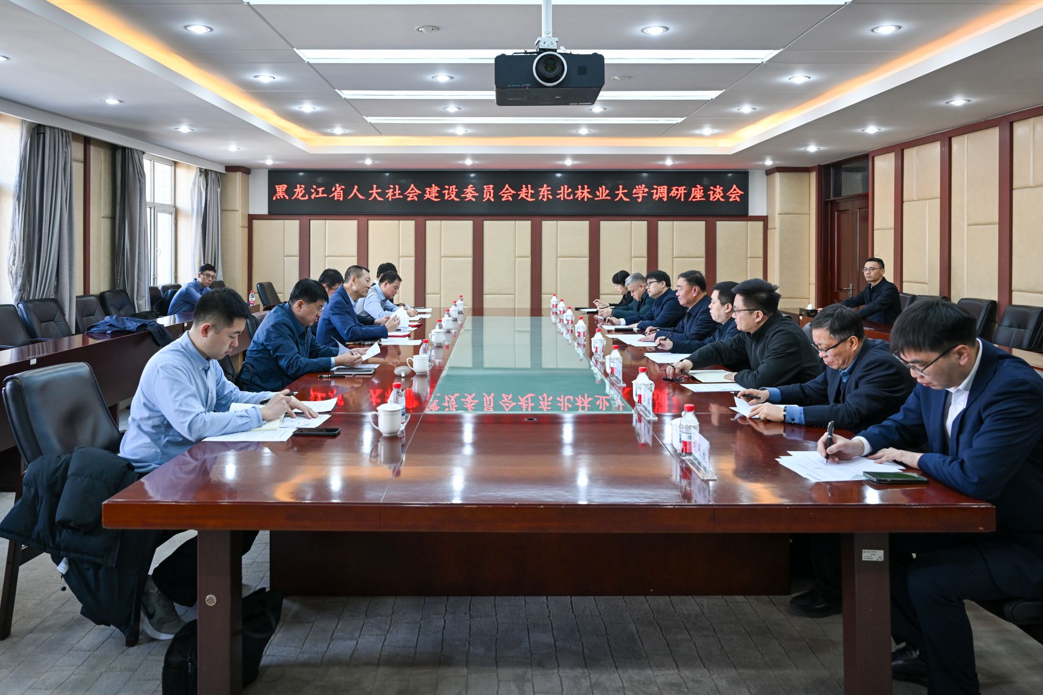 孙猛代表学校对调研组的到来表示欢迎,并从办学定位、学科建设、人才培养、服务龙江发展等方面,介绍了学校的办学优势与特色。他表示,东北林业大学作为扎根龙江、服务全国的林业高等学府,始终将学科发展与龙江生态建设、林业产业发展紧密结合,此次将全力调配优质科研资源,支持专家团队开展省人大交付的林下可燃物载量调研工作,充分发挥学科、人才、科研优势,为龙江生态安全屏障建设、绿色高质量发展持续贡献东林智慧与东林力量。
