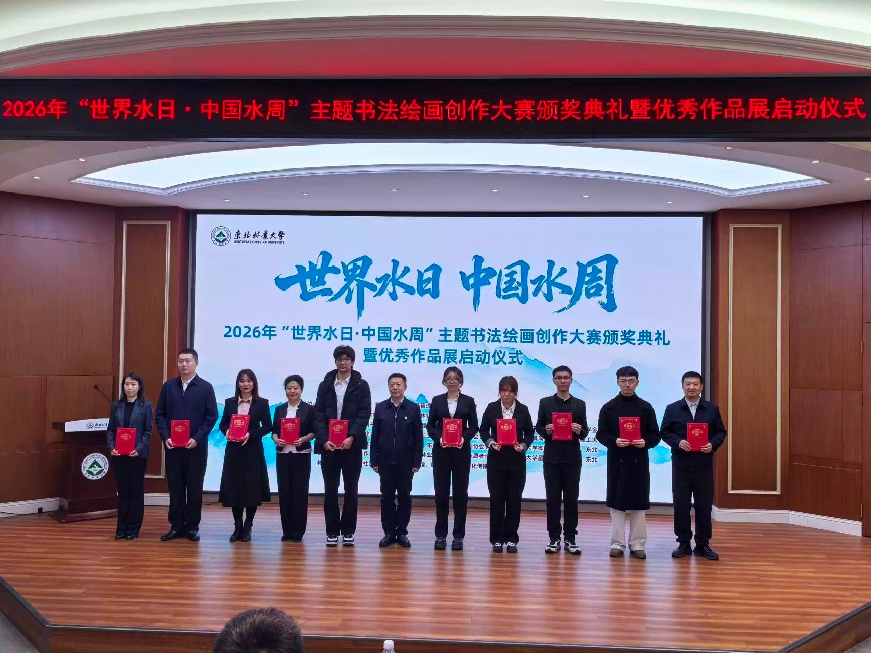 在第34届“世界水日”和第39届“中国水周”来临之际,3月26日,由黑龙江省生态环境厅、省机关事务管理局与我校联合主办的“感江河大爱,书岁月情怀”主题书画大赛优秀作品展启动仪式暨颁奖典礼在我校举行。黑龙江省机关事务管理局党组成员、副局长王鹏,黑龙江省生态环境厅二级巡视员朱燕宏,我校党委副书记翟雪峰出席活动。
