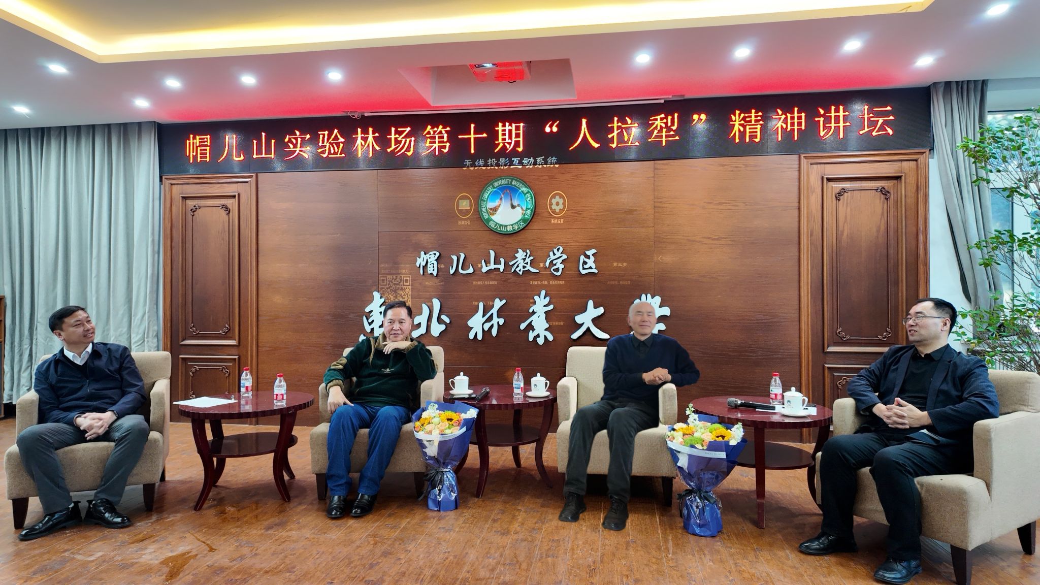 四月的帽儿山,草木蔓发,春山可望。值此帽儿山实验林场建场68周年之际,为赓续弘扬东林“人拉犁”精神,深刻诠释其在新时代的内涵,4月13日,帽儿山实验林场举办第十期“人拉犁”精神讲坛,本期讲坛特邀全国著名林木遗传育种专家、学校原校长杨传平教授,全国著名林木遗传育种专家刘桂丰教授,以及帽儿山实验林场场长金辛担任主讲嘉宾。为林场全体职工带来了一堂紧扣时代脉搏、涤荡心灵尘埃的思政课。