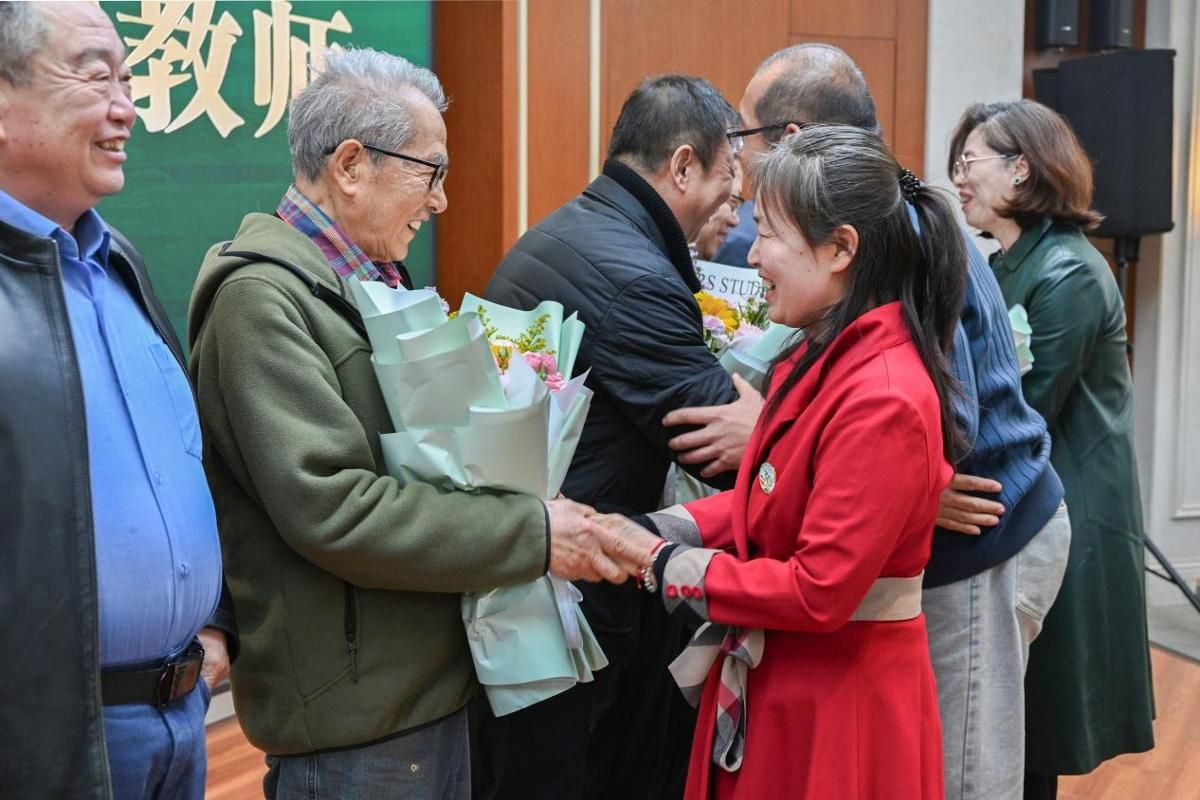 绿色使者志愿者协会最早的指导教师之一、年逾九旬的祝宁教授为优秀会员颁奖。当白发与青春同框,是根与叶的相逢,更是坚守与接力的交融。