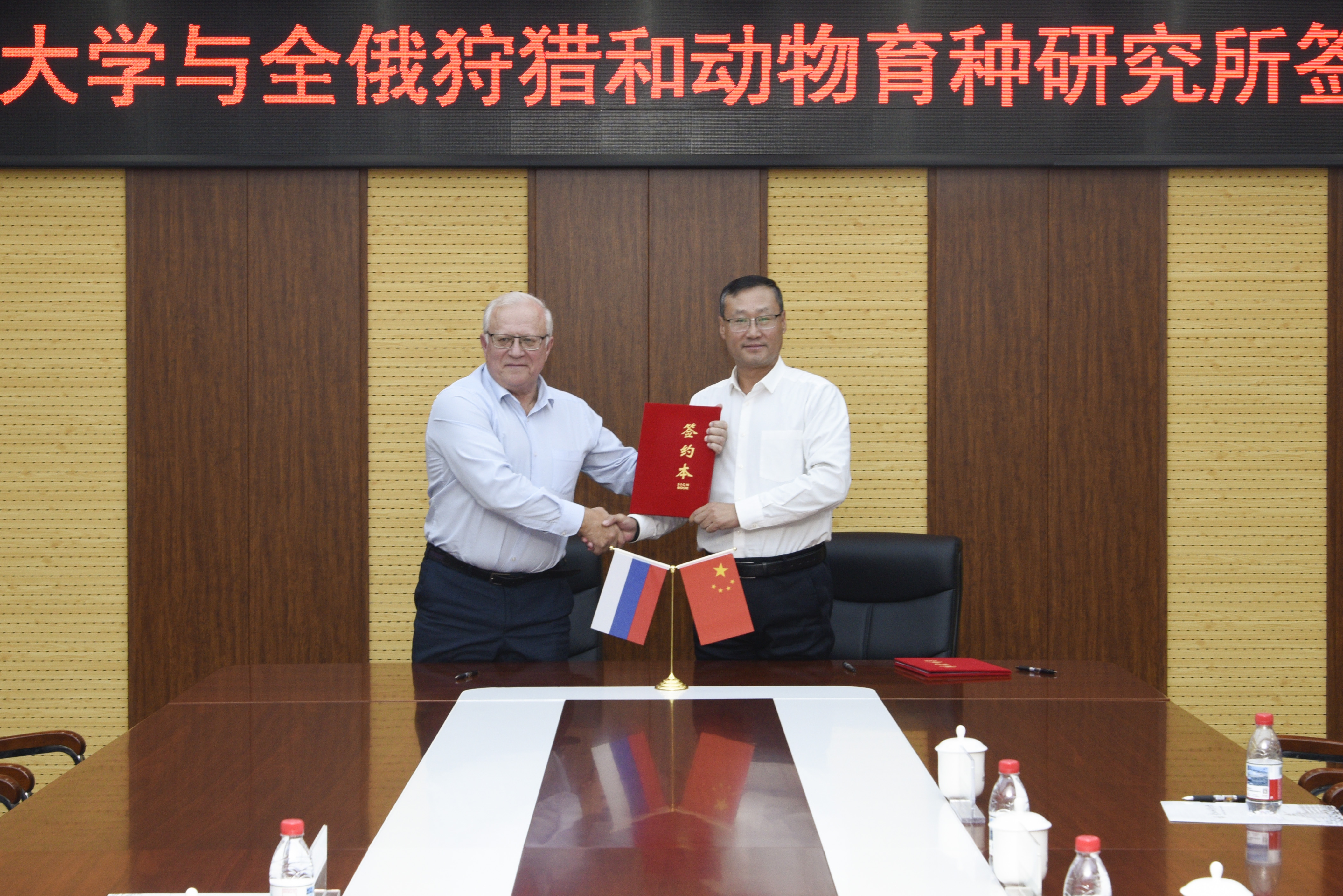 会谈结束后,双方共同签署了《以日特科夫教授命名的全俄狩猎和动物育种研究所与东北林业大学合作研究协议书》。