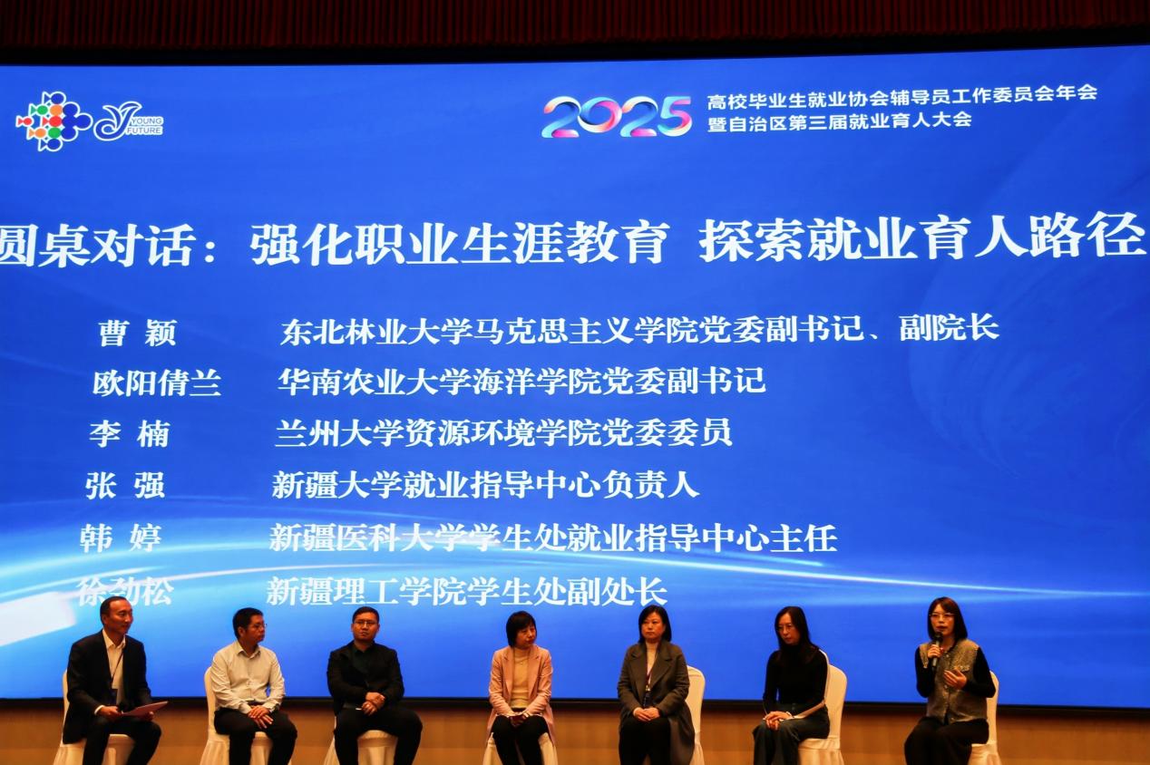 本次会议共为期三天,设置了主题报告、人工智能就业服务、就业风险防范、生涯教育探索等多个专题板块,通过专题报告、圆桌对话、企业走访等形式,为各高校搭建了深度交流与资源共享的平台。在圆桌对话环节,学校马克思主义学院党委副书记、副院长曹颖与其他五位就业领域专家一道,围绕“强化职业生涯教育·探索就业育人路径”主题开展了对话交流。
