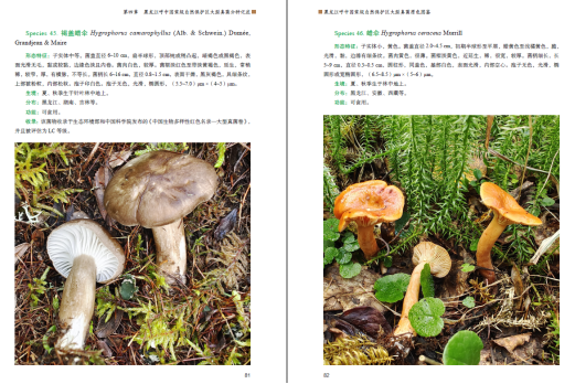 《黑龙江呼中国家级自然保护区大型真菌原色图鉴》一书在介绍黑龙江呼中国家级自然保护区自然概况的基础上,也对我省的蘑菇资源进行了科普,通过野外拍摄的彩色图片展示,既对黑龙江省大型真菌多样性的研究、开发、利用和保护提供了科学的依据和参考,也可以作为蘑菇野外识别的工具书。