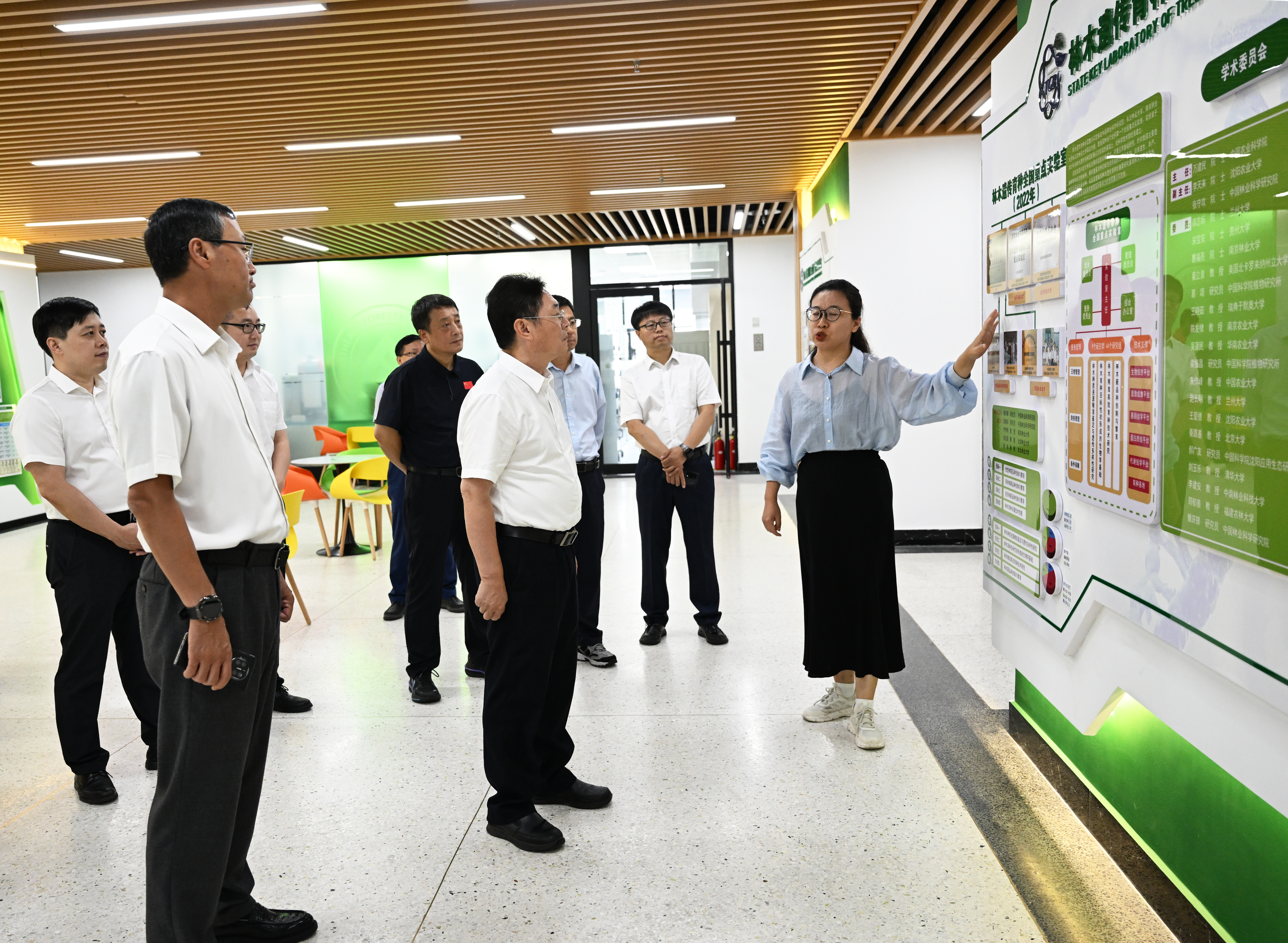 国家林草局办公室副主任那春风,科技司二级巡视员冉东亚,科技司创新处处长程强,科技发展中心二级调研员李屹峰,学校办公室和林学院相关人员一起参加调研。