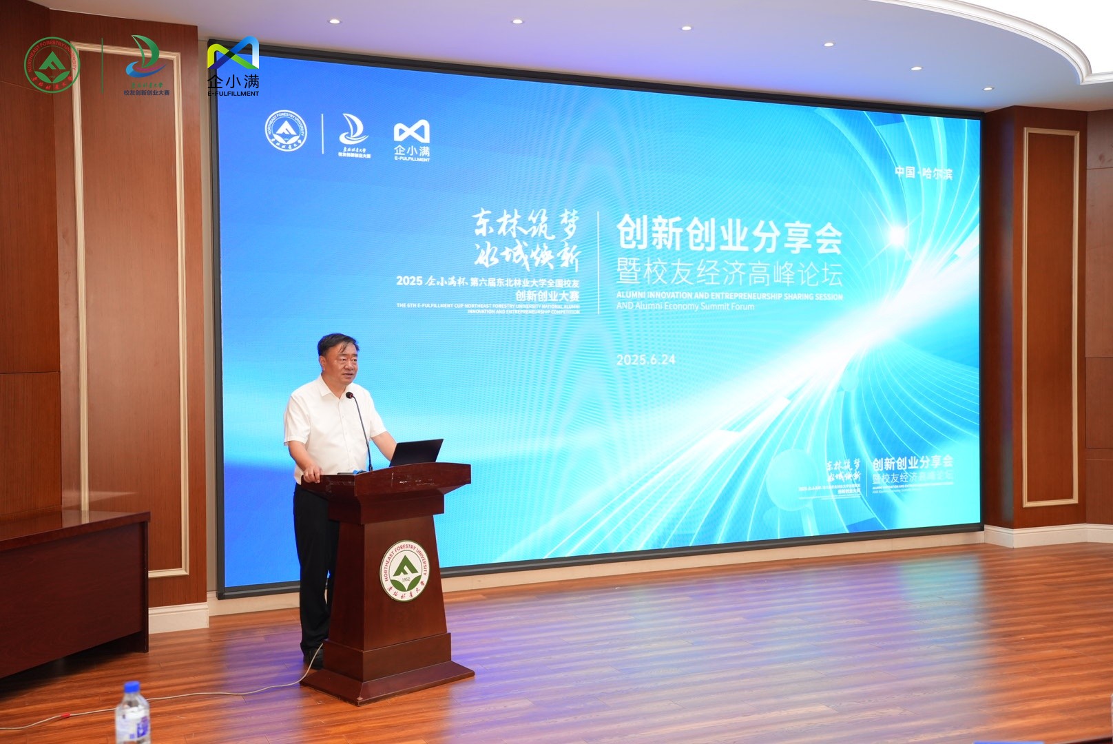 刘守新在致辞中指出,学校全国校友创新创业大赛为全国创业校友起到了引领示范作用。通过本次论坛地方对招商政策的推介、校友企业的经营分享、东林科技成果的多维展示,必将在推动校友经济发展、吸引校友来龙江创业等方面进一步深入探索。学校也将加快推动校友经济建设,在生态文明建设、林业碳汇经济发展、智能装备制造等领域全力搭建校友与城市的双向平台,促进多方共赢发展。