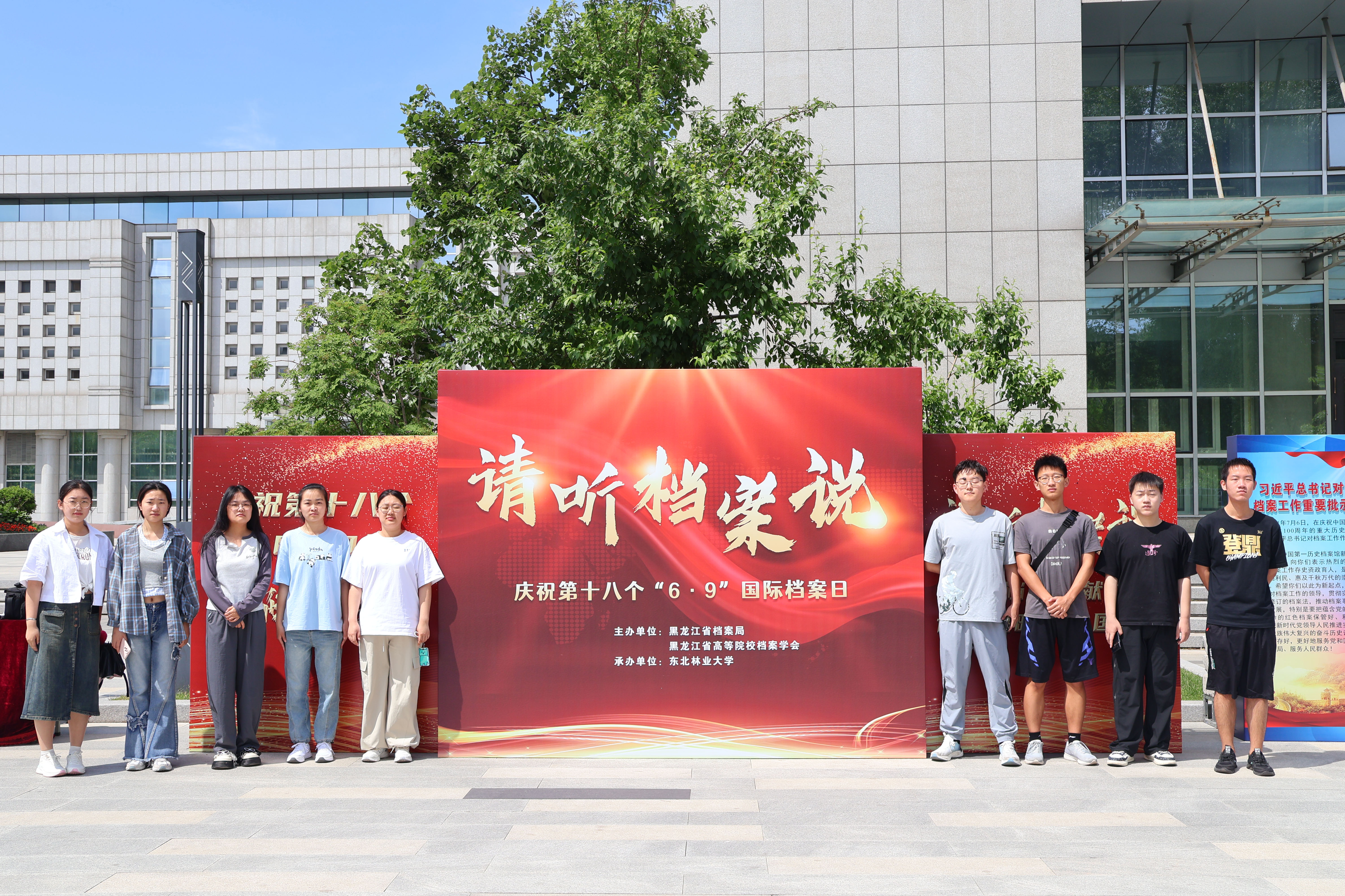 在第18个国际档案日来临之际,黑龙江省“请听档案说”国际档案日联展活动于6月9日在我校校友广场举行。黑龙江省委办公厅二级巡视员焦明忠、赵晶莹,学校党委常委、副校长翟雪峰,黑龙江省高等院校档案学会有关领导及70余位高校档案工作人员参加本次活动。