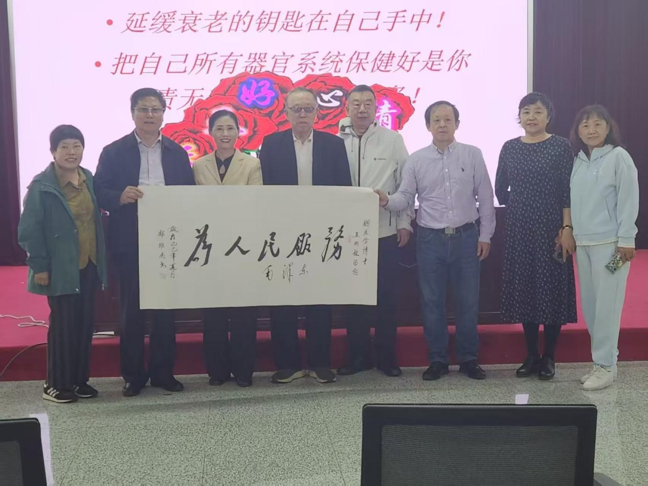 郭维忠向王丽敏教授赠送了专门为其书写的毛体《为人民服务》条幅。