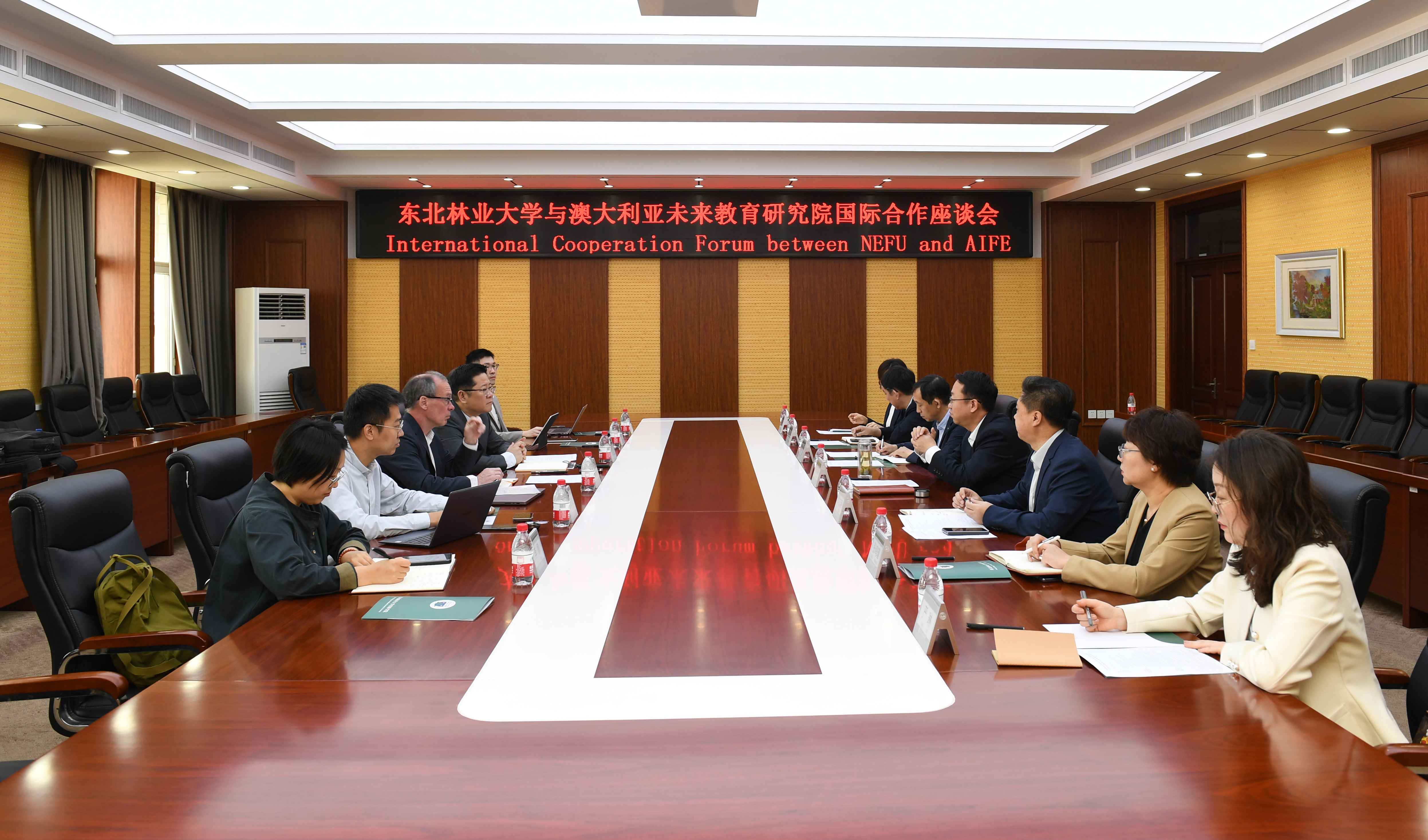 李明泽介绍东林总体办学情况和学科布局情况。他指出,学校优势特色学科建设紧紧围绕国家生态文明建设、新质生产力的发展建设布局,教学科研依托两个实验林场,结合信息技术,打造学校乃至全国生态文明教育基地。他表示,学校学非常重视同AIFE的合作,学校也将继续按照国家相关政策要求持续推进海南国际学院建设,希望双方在已有合作基础上,拓展更大的合作空间,实现合作共赢。