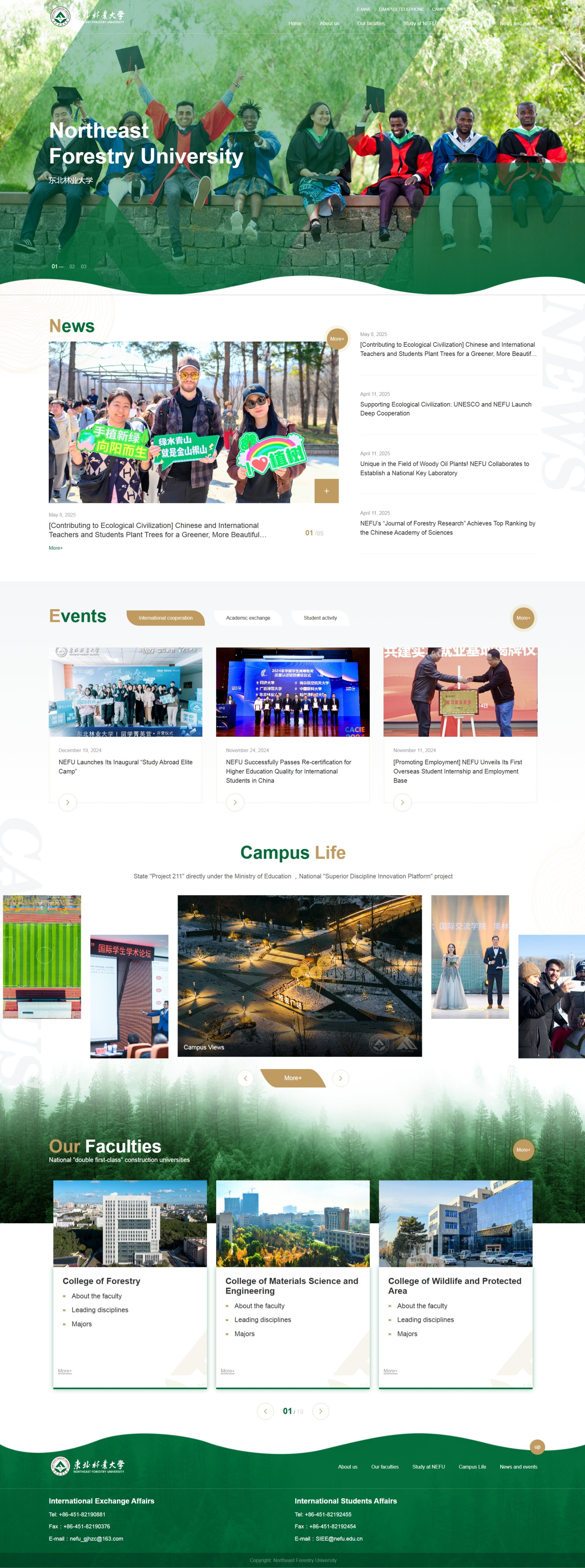 全新改版的英文网站设有News、International cooperation、Academic exchange、Student activities、About us、Our faculties、Study at NEFU、Campus Life等栏目,从不同维度展现学校在国际合作、学术交流等方面的动态与成绩,展示各学院的特色与优势。新版英文网站将成为学校对外交流的重要桥梁,助力提升学校国际影响力。