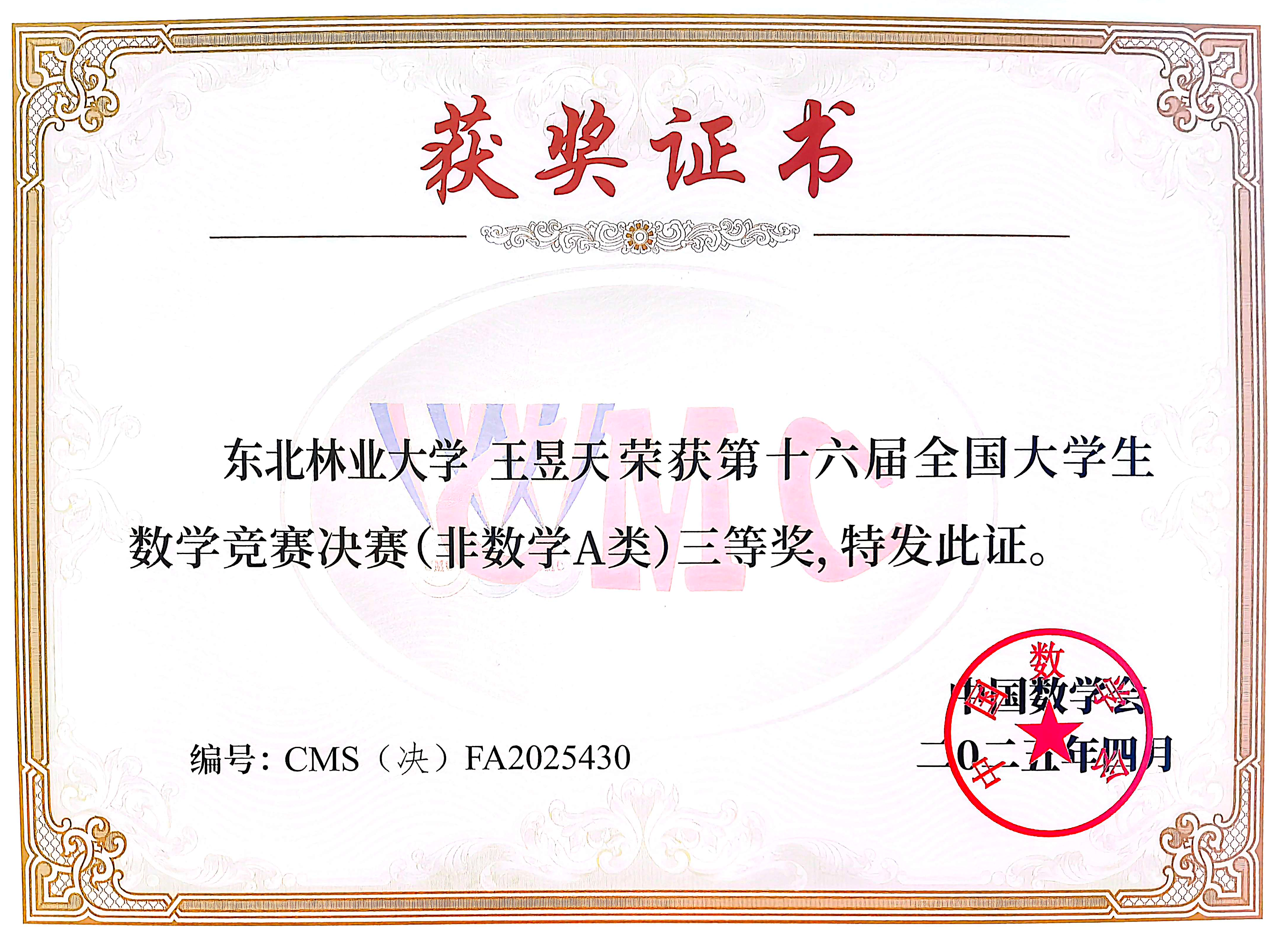 近年来,我校构建了 “以赛促学、教赛相长” 的林业院校数学基础课教学体系,以培养优秀人才为目标,持续深化课程改革,夯实学生数学基础;相关部门及各学院协同联动,形成强大育人合力。数学系组建竞赛指导教师团队,通过有序组织、专项培训、开设公选课程等方式为学生参赛提供专业指导,强化学生数学思维训练,为学生综合素质提升和核心竞争力增强提供坚实支撑。