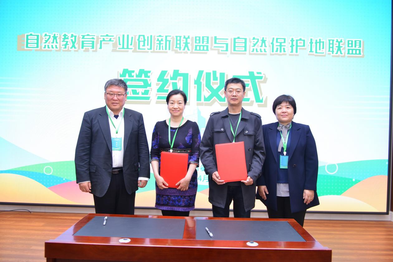 会上,自然教育产业联盟与自然保护地联盟达成战略合作协议,自然教育产业创新联盟秘书长李广龙与自然保护地联盟秘书长吴庆明进行签约。