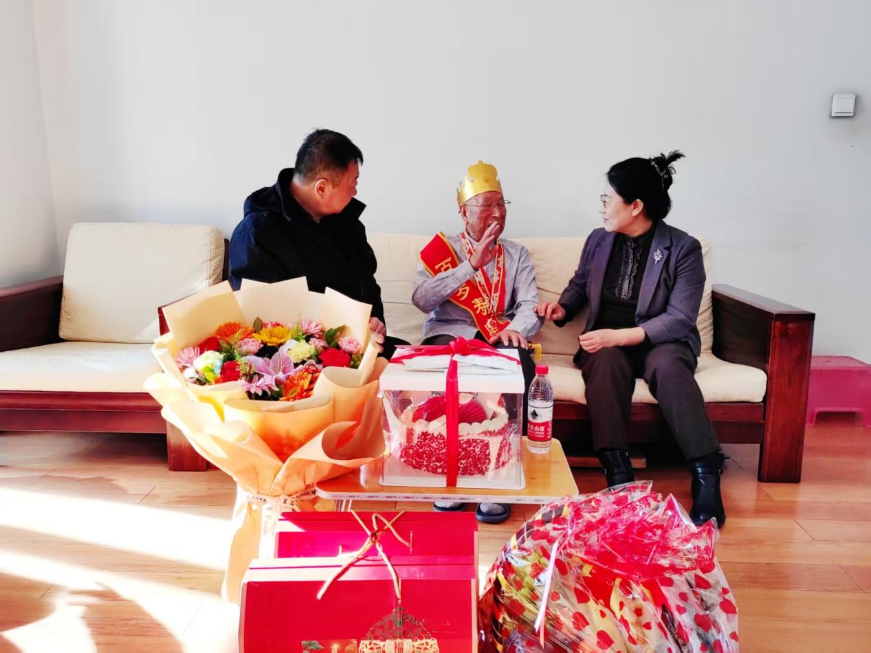 夕阳无限好,真情满东林。学校离退休工作处下一步还将派人赴帽儿山、辽宁沈阳看望慰问百岁老人李云山和石绍业。离退休工作处也将进一步落实完善走访慰问制度,加强精准化服务,用心用情用力关怀关爱离退休老同志。特别是针对高龄、孤寡、空巢、独居、重病等有特殊困难的老同志,采取专人联系、定期了解、特别关注的工作模式,确保让老同志“平时生活有人过问,生病住院有人慰问,特殊困难有人帮助”,持续不断地把党和学校的温暖送到老同志心坎上,增强老同志的获得感、幸福感、安全感。