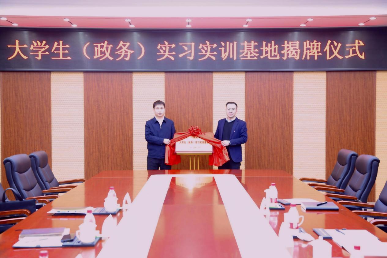 会上还举行了大学生(政务)实习实训基地揭牌仪式,李洪峰和田海波共同为基地揭牌。与会人员就合作具体事项进行了深入的研讨交流。