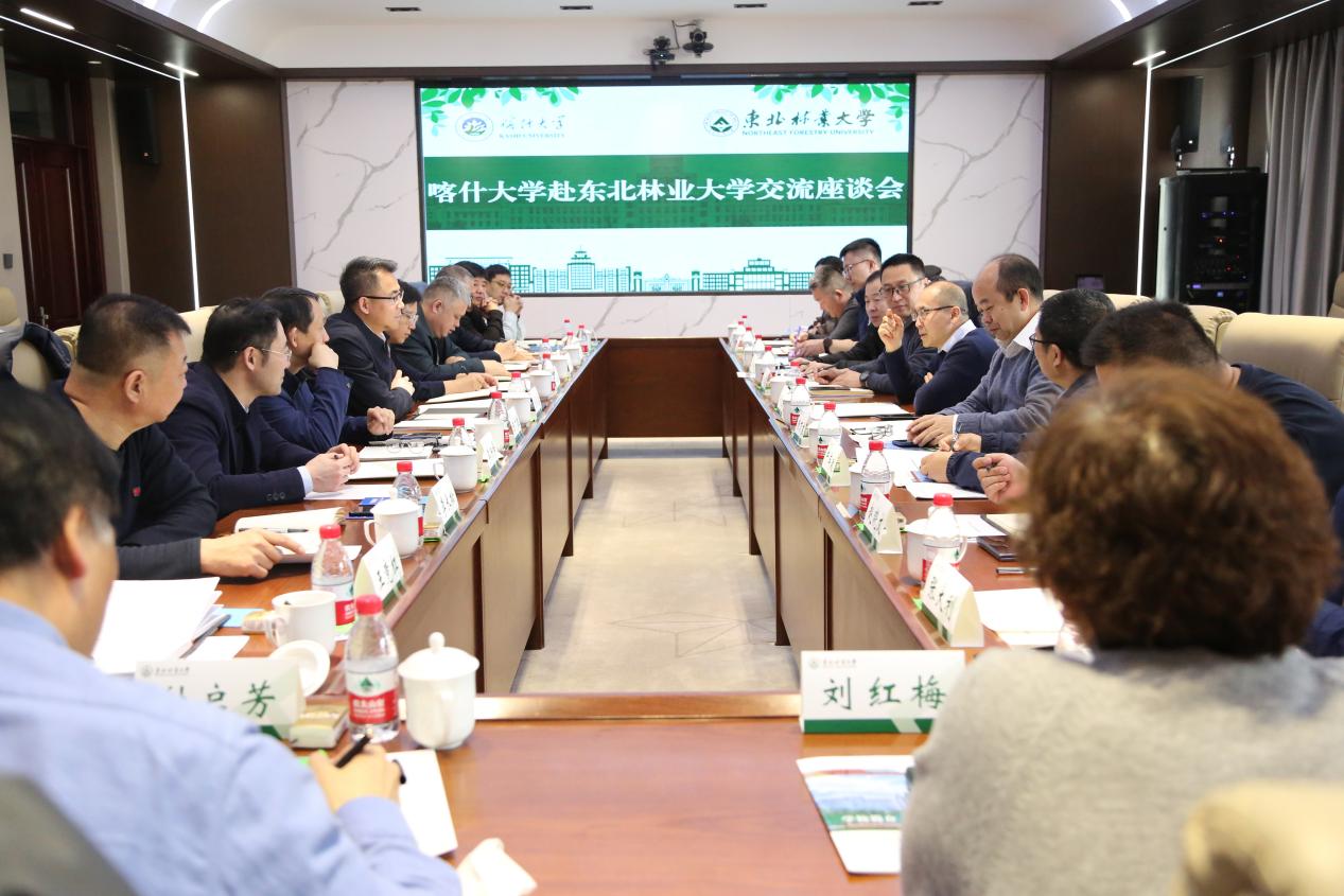 座谈会上,冯冠军向学校介绍了喀什大学目前的发展建设情况,向东北林业大学长期以来援助喀什大学表示感谢。他表示,希望东北林业大学能够积极宣传喀什大学人才引进相关政策,在博士人才引进以及“银龄教师”选派方面给予喀什大学更多支持。