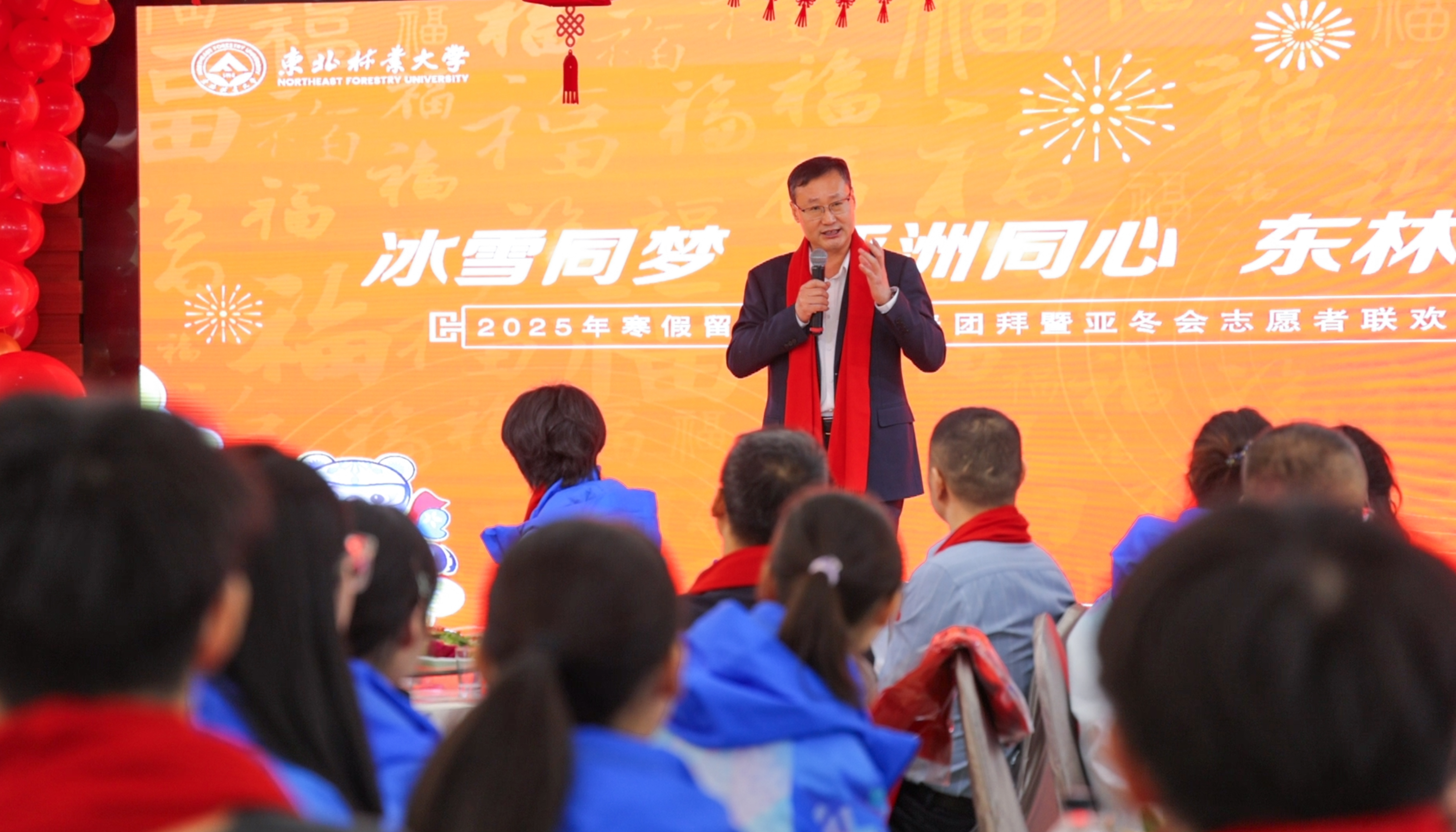 金蛇献瑞,蛇舞新春。1月28日,传统的除夕佳节,学校在俭德园四楼餐厅举行2025年寒假留校学生新春团拜暨亚冬会志愿者联欢活动。学校党委书记孙猛,校长宋文龙,党委常委、副校长张春雷与300余名留校学生共度除夕。