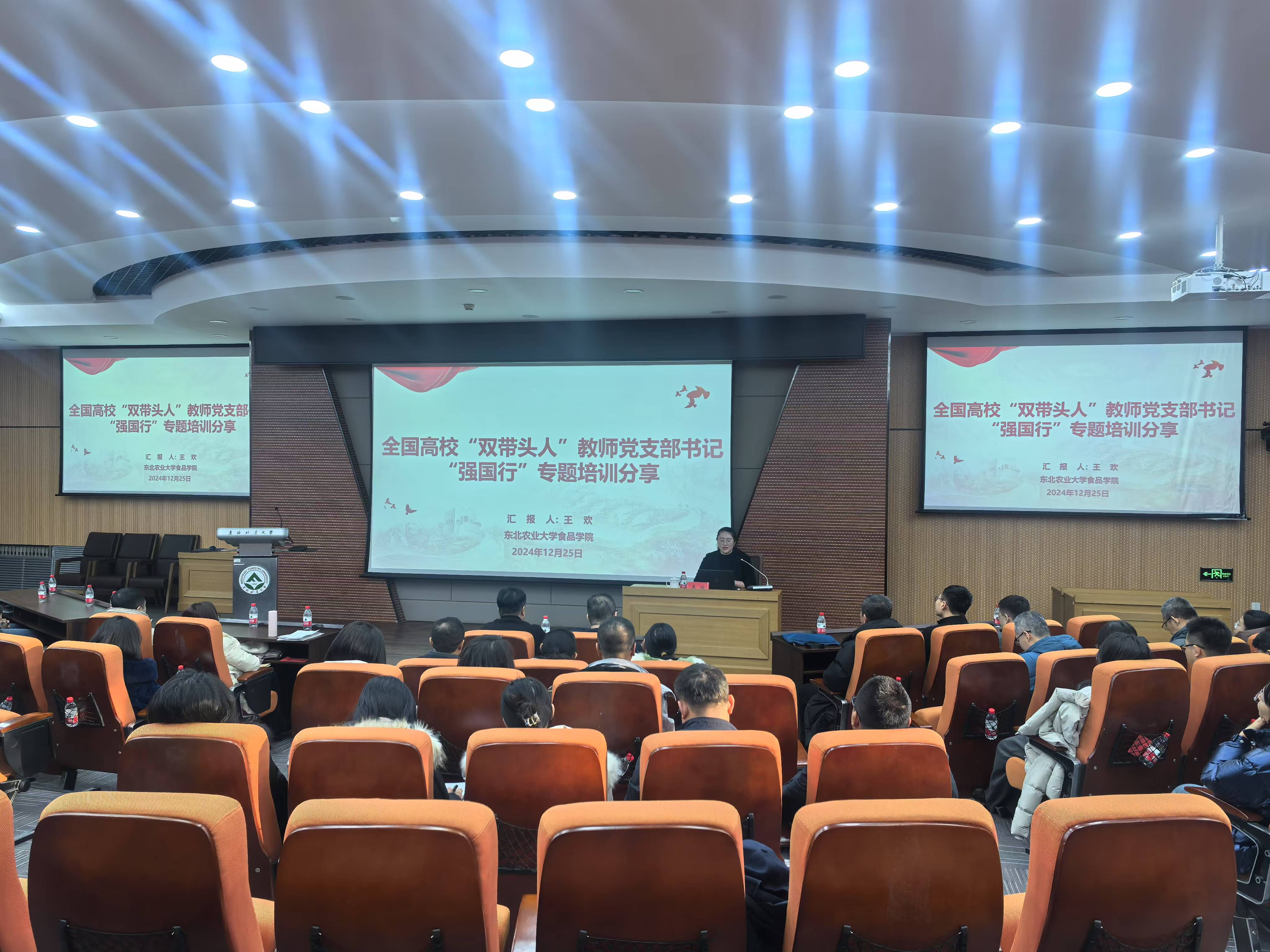 12月25日下午,学校“双带头人”教师党支部书记“强国行”专项行动专题培训在奥林楼101会议室举行。会议邀请东北农业大学食品学院粮食工程系教师党支部书记王欢教授作专题报告。各学院党委书记、“双带头人”教师党支部书记参加培训。会议由党委组织部副部长李想主持。