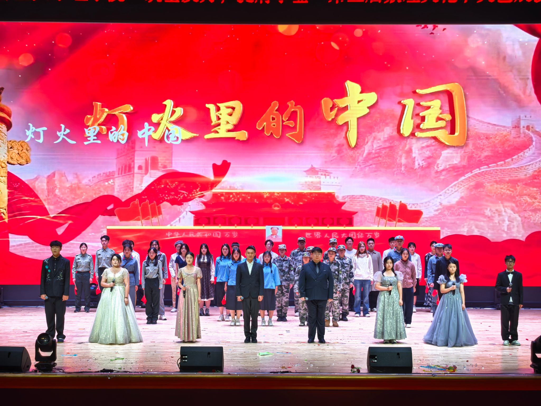 浓烈的爱国情、强国志将晚会推向高潮。从纪念抗战胜利、祈愿和平的舞蹈《归来》,到告慰先辈、誓言奋斗的朗诵《如你所愿》,再到唱响盛世华章、抒发家国大爱的《灯火里的中国》,是理学师生将个人理想与民族复兴伟业紧密相连;全场齐声高唱的校歌《前进,东北林业大学》,是理学人强基兴校、挺膺担当的坚定决心。