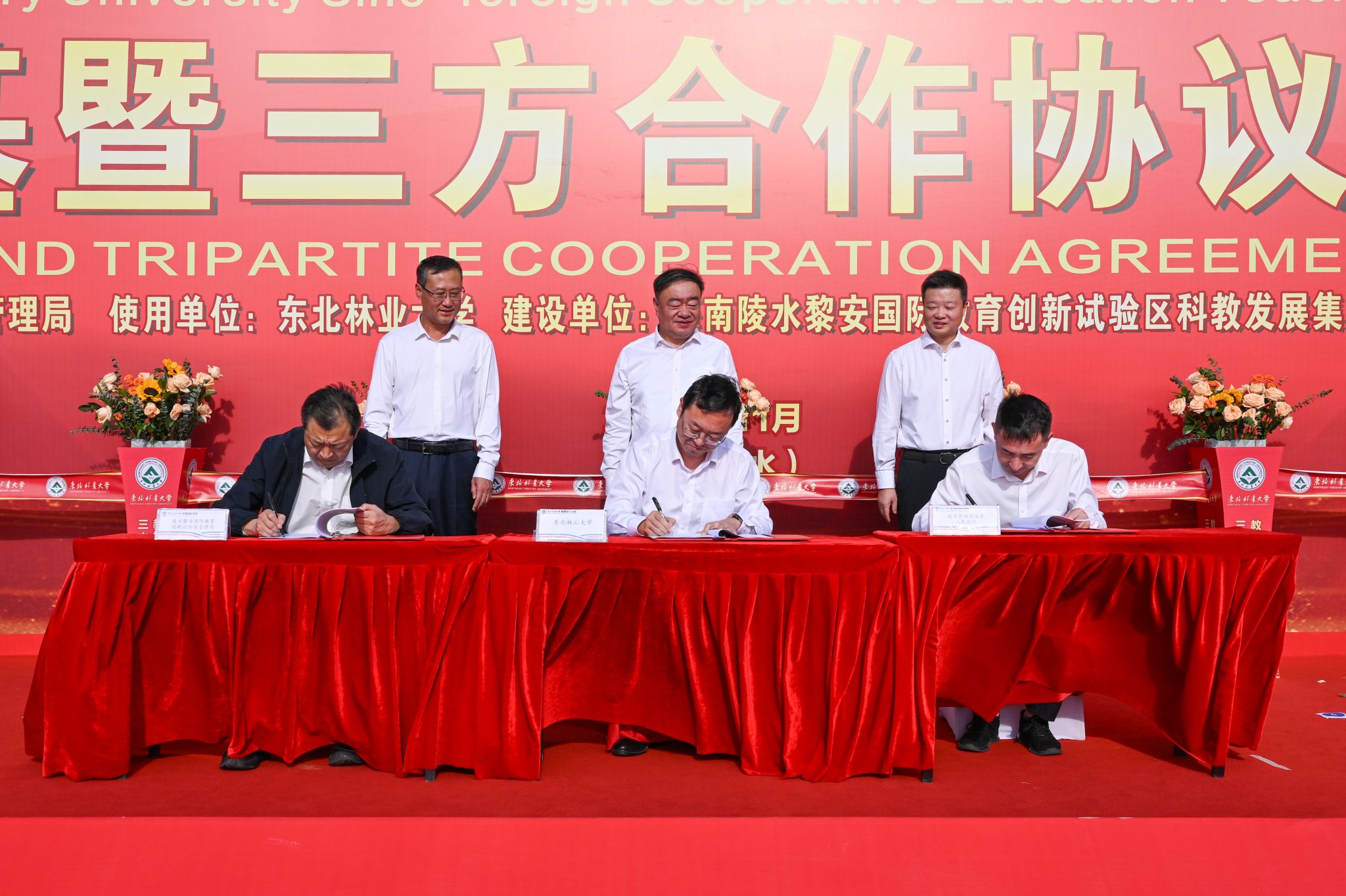 仪式上,陵水黎族自治县人民政府、海南陵水黎安国际教育创新试验区管理局与学校正式签署《关于东北林业大学入驻海南陵水黎安国际教育创新试验区合作协议》。