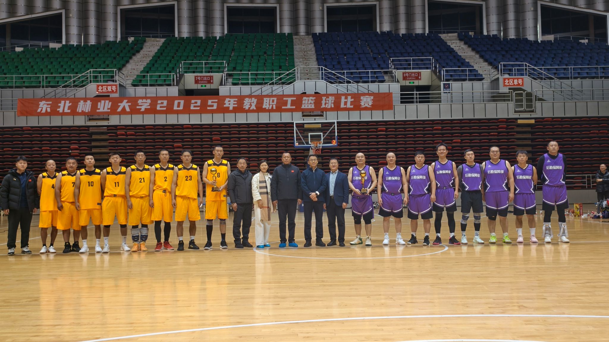 经过八个比赛日的激烈角逐,11月19日下午,我校2025年教职工篮球赛在体育馆吹响了终场哨声。本次比赛共有18支队伍、200多名篮球爱好者参与比赛,甲、乙级队最终在精彩纷呈的37场小组赛、交叉半决赛及决赛后,顺利产生各级别优胜队伍。体育部成功卫冕,后勤保障部获得亚军,家居与艺术设计学院和机电工程学院获得季军,园林学院和土木与交通学院晋升甲级队。学校党委常委、副校长张春雷为冠军、亚军获得者颁发奖杯。