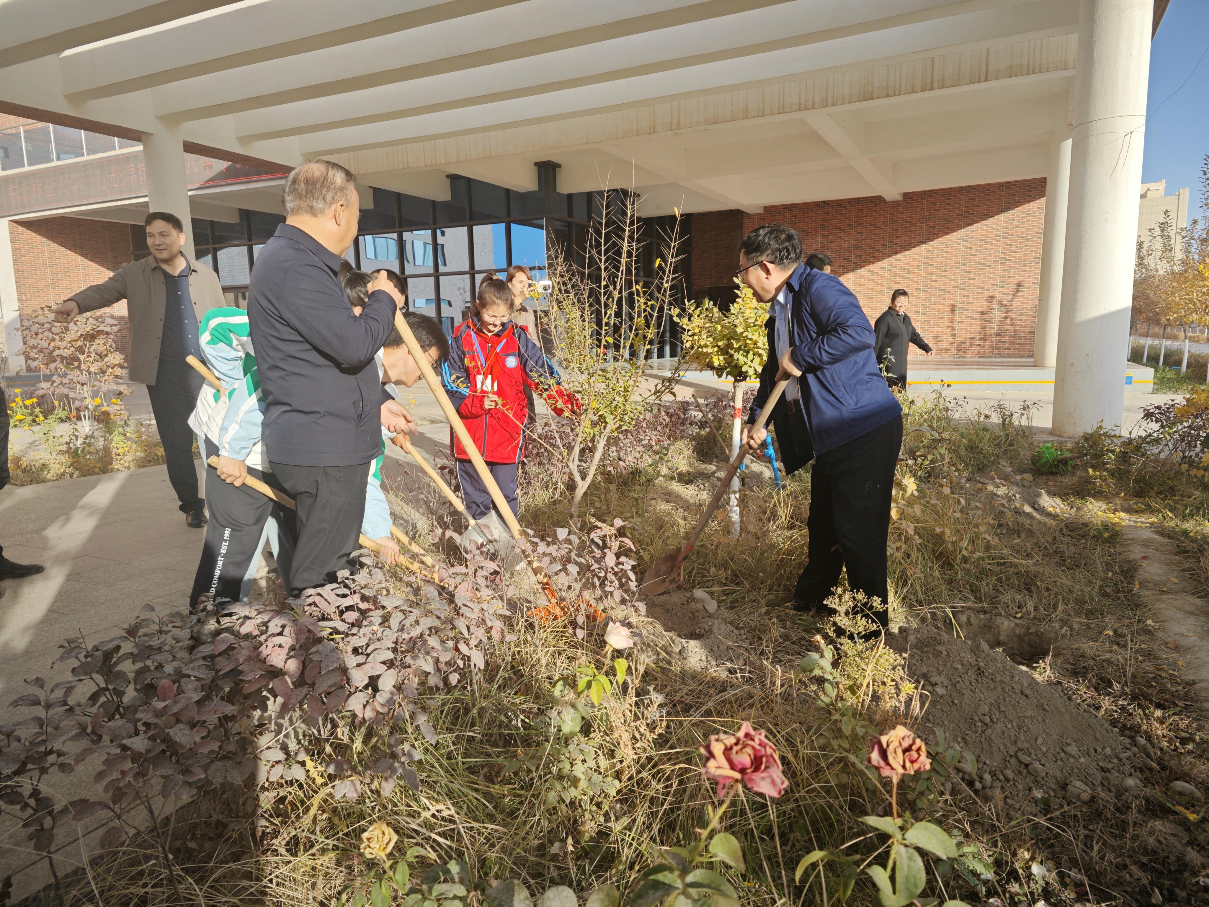 张志坤一行随后来到柯柯牙纪念馆,实地感受“自力更生、团结奋斗、艰苦创业、无私奉献”的柯柯牙精神。在温宿县第八中学,张志坤一行深入了解志愿者的工作环境、教学成果、社团建设等情况,并与志愿者们同种石榴树,寓意着东林与阿克苏会始终像石榴籽一样“紧紧抱在一起”。