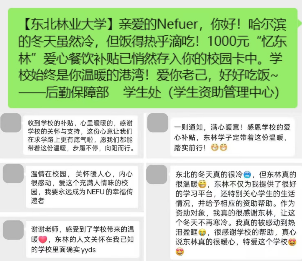 “我真的被感动到热泪盈眶”“超爱这个充满人情味的校园”……近日,收到学校发放的各类爱心补贴后,众多学生通过朋友圈等社交媒体表达着对学校暖心之举的感激之情。